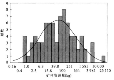 大水金矿床是著名的超大型矿床.在借鉴前人矿床地质研究成果的基础上, 通过对矿体规模数据的多重分形特征及吨-品位关系研究, 揭示了成矿过程中资源量生长的数量规律.矿体长度服从简单分形分布, 矿床资源量的吨-品位关系能用指数函数或直线方程更好地拟合, 矿床与矿体资源量双对数图、吨-品位的双对数图的多重分形特征表明: 在分形构造成矿空间中, 特定成矿阶段的矿床资源量的生长方式是自组织非线性增殖过程, 与自组织有关的随机性使吨-品位关系趋于指数关系; 在整个成矿过程中, 矿床资源量的生长方式是各阶段矿体资源量的线性叠加.进一步根据熵最大化原理及效用理论导出了与统计结果吻合的矿床吨-品位方程, 并得到柴家庄金矿矿体地质数据的验证.