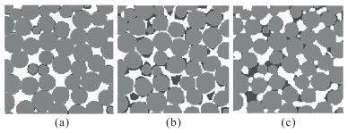 为研究岩石颗粒胶结方式对储层岩石弹性和渗流性质的影响,采用过程模拟法构建了三维数字岩心,在此基础上,分别利用有限元方法和格子玻尔兹曼方法研究了胶结物均匀生长、沿孔隙生长和沿喉道生长3种胶结方式对岩石弹性和渗流特性的影响规律.结果表明:岩石颗粒胶结方式会影响岩石刚性和孔隙连通性,引起岩石弹性模量和渗透率的变化.在相同孔隙度下,胶结物沿喉道生长形成的岩石抗压性最强,渗透率最小;沿孔隙生长形成的岩石抗压性最弱,渗透率最大.3种胶结方式下,岩石弹性模量随着胶结物含量增加而增大,变化率近似相等;岩石渗透率随着胶结物含量的增加而减小,岩石渗透性对颗粒胶结方式的变化更敏感.