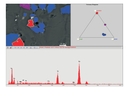 以山西大同新生代玄武岩样品为例, 利用Quanta 200扫描电镜、GENESIS能谱仪对能谱仪PPA分析方法进行了实验研究, 该方法为粒度和物相自动分析方法.笔者首次把能谱仪PPA分析方法应用到地质学领域的岩石光薄片研究中, 快速得出了一系列不同物相的形态学数据及化学成分分析结果: 物相种类、每一种物相的颗粒数、每一个颗粒的平均直径、面积、周长、圆度、长宽比及化学成分等, 并得出了不同物相在该视域所占的面积百分比及每种物相颗粒的平均直径, 克服了传统光薄片粒度分析方法的所有缺点, 为矿物学、岩石学及矿床学研究提供了一套非常有意义的数据.