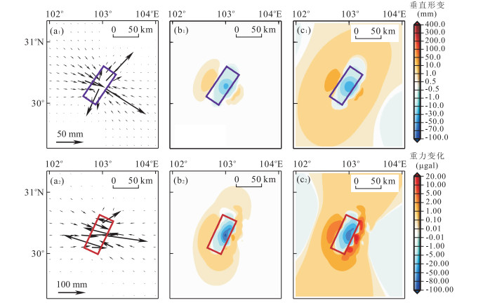 为了研究芦山地震的孕震过程和震源区的长期构造过程以及解释实测的震后形变和重力资料, 采用分层介质模型, 利用数值模拟的方法, 考虑区域流变系数, 计算了地震引起的地表同震、震后的形变和重力变化以及区域内部分GPS与重力连续观测台站的震后形变和重力变化的时间序列.结果表明: 芦山地震的地表同震形变显示出发震断层明显的逆冲特性; 粘弹性松弛效应引起的震后地表形变和重力变化比同震形变和重力变化的范围明显扩大, 但随着粘滞系数的增加, 变化量明显减小; 观测台站的震后变化时变曲线显示震后形变和重力变化在震后50 a间变化显著, 100 a后基本平缓, 趋于稳定; 模拟计算的GPS台站中除了MEIG台和MYAN台以外, 其余台站的震后观测必须考虑粘弹性松弛的影响.