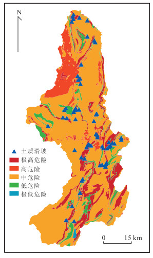 危险性评价是滑坡灾害预防与减灾工作首要解决的重要内容.在地理信息系统技术支持下, 以山地灾害频发区——小江流域作为研究对象, 选取坡度、土体粘聚力和内摩擦角这3个评价指标构建滑坡危险性分级评价指标体系, 将投影寻踪技术运用到滑坡危险性等级评价中, 对评价样本的各指标因素进行线性投影, 以最优投影方向所对应的投影特征值作为评价依据, 建立了滑坡危险性等级综合评价模型, 绘制了滑坡危险性等级分布图.结果表明: 研究区极高危险区、高危险区、中等危险区、低危险区和极低危险区的面积比例为14.28∶9.41∶69.12∶7.00∶0.19;根据所建立的5级评价指标体系对研究区60个土质滑坡点资料进行了验证, 在占研究区总面积23.69%的高、极高危险区的小范围内, 实际发生土质滑坡数量45个, 占总土质滑坡数量的75.00%;中等危险性级别以上区域拥有的土质滑坡数量占全部土质滑坡的96.67%;不同危险性级别的滑坡体积方量统计结果表明, 滑坡体积方量密度随危险性级别的提高而迅速增加.对比评价结果及实测结果可知, 投影寻踪分级结果符合实际情况, 证实了该方法的正确性, 为滑坡危险性评价提供了一条新思路.