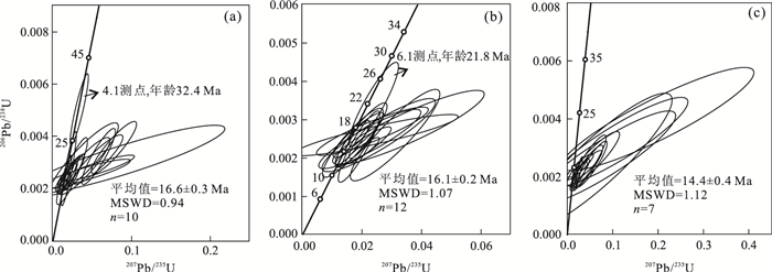 岗讲铜钼矿床是西藏冈底斯成矿带中段典型的斑岩型矿床,岗讲矿床成岩成矿时代、岩浆演化过程及其与成岩成矿关系尚不明确,利用LA-ICP-MS锆石U-Pb定年方法对岗讲矿区主要岩体二长花岗斑岩、花岗闪长斑岩和英云闪长玢岩成岩时代进行研究,获得锆石U-Pb年龄加权平均值分别为16.6±0.3 Ma (MSWD=0.94,n=10)、16.1±0.2 Ma (MSWD=1.07,n=12)、14.4±0.4 Ma (MSWD=1.12,n=7);同时采用辉钼矿Re-Os同位素测年方法首次对岗讲矿床石英硫化物脉中的辉钼矿进行定年,获得12件辉钼矿Re-Os同位素模式年龄集中于13.24±0.20 Ma~13.55±0.22 Ma,加权平均年龄为13.4±0.1 Ma (MSWD=0.65),等时线年龄为13.6±1.6 Ma (MSWD=1.2).结果表明:(1) 岗讲矿区复式岩体侵入序列为含巨斑黑云二长花岗岩-二长花岗斑岩-花岗闪长斑岩-流纹斑岩 (深部定名为英云闪长玢岩),成岩时限为16.6~14.4 Ma,成矿时代为13.4 Ma左右,成岩成矿是一个连续的岩浆演化过程;(2) 辉钼矿中Re含量为155.4~171.1 μg/g,均值为162.9 μg/g,指示其成矿物质中有幔源成分的加入;(3) 矿床产出于中新世印度-亚洲大陆碰撞后伸展构造环境.