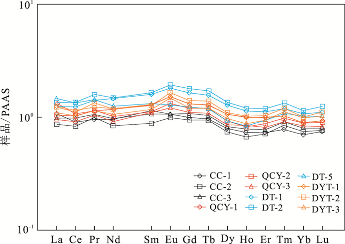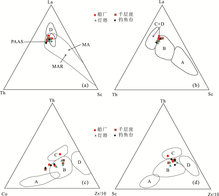 灵山岛下部莱阳群重力流沉积地层以其巨厚的沉积规模,独特的沉积特征受到国内外地质学界越来越多的重视.但目前,该套地层的源区风化程度、物源性质、物源区构造背景及沉积环境尚不明确,通过对灵山岛下部莱阳群粉砂岩进行岩相学分析、主量元素XRF测试、稀土及微量元素ICP-MS测试,结果显示:粉砂岩SiO2含量较低 (平均51.78%),Fe2O3T含量较高 (平均5.73%),Na2O平均含量为2.74%,K2O平均含量为2.79%;通过主量元素投图分析,样品归类为杂砂岩及岩屑砂岩;样品ΣREE为153.00×10-6~254.38×10-6,平均为201.65×10-6,高于PAAS及UCC,富集轻稀土元素,贫重稀土元素,具有中等程度Eu负异常,弱Ce负异常;相对于UCC,样品富集大离子亲石元素,弱富集高场强元素,亏损过渡组元素.样品ICV值高 (>0.84)、为初次循环沉积,CIA值低 (<65) 表明源区风化强度低,物源为长英质物质及少量古地壳再旋回物质,物源区大地构造背景为大陆岛弧与活动大陆边缘,沉积环境为海相还原环境且莱阳期为干热气候.此外,应用对REE元素进行归类统计的方法来推测物源区,分析表明样品物源区最有可能为胶南群与蓬莱群地层.