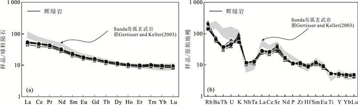 西昆仑造山带显生宙以来经历了原特提斯洋和古特提斯洋两个重要的演化阶段.目前对古特提斯洋构造过程的认识仍然存在较大争议.通过对麻扎达坂辉绿岩墙进行详细的野外地质、岩石学、锆石U-Pb年代学及岩石地球化学研究,结果表明,辉绿岩锆石U-Pb谐和年龄为287±4.6 Ma,代表了辉绿岩浆的结晶年龄,表明该辉绿岩墙为早二叠世岩浆活动的产物.辉绿岩的SiO2含量为48.29%~50.21%,低Mg#值(0.36~0.39),属亚碱性拉斑系列玄武岩.辉绿岩富集LREE、LILE(如Rb、Ba、Sr),亏损Nb-Ta、P等高场强元素,总体表现出类似岛弧火山岩的地球化学特征.同时,麻扎达坂辉绿岩锆石Hf同位素组成(εHf(t)=4.00~13.71,平均值为7.61,TDM1(Hf)=0.76~0.38 Ga)说明其不是来源于类似N-MORB的亏损地幔源区.区域地质研究表明,西昆仑及以北塔里木克拉通在早二叠世处于伸展构造背景,不存在同期的俯冲消减事件,倾向于认为麻扎达坂辉绿岩墙是在造山后伸展背景下,早期俯冲流体交代的岩石圈地幔部分熔融形成的原始岩浆经过一定程度的分异结晶沿区域性断裂侵位形成的,而与塔里木地幔柱不具有地球动力学上的联系.