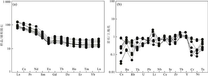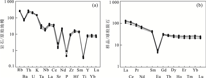 泉水沟岩体位于西昆仑造山带和巴彦喀拉褶断带夹持区域,对追溯西昆仑地区的区域发展演化具有重要指示意义.通过高精度同位素年代学、岩石矿物学与地球化学等手段,准确限定岩体的形成时代并查明其地球化学特征.LA-ICP-MS锆石U-Pb定年获得该岩体中花岗闪长岩的年龄为217.6±0.9 Ma,其中的暗色包体黑云母石英闪长岩年龄为217.4±0.7 Ma,均属晚三叠世(T3).花岗闪长岩具有富硅(SiO2=67.21%~68.85%)、富碱(全碱变化于6.36%~6.76%,里特曼指数δ=1.56~1.86)、富钾(K2O=3.50%~3.96%,K2O/Na2O=1.20~1.41),而贫TiO2、MnO和P2O5(< 1%)的特点;岩体的铝饱和指数A/CNK为0.88~1.05;总体上属高钾钙碱性准铝质-弱过铝质I型花岗岩.岩石富集轻稀土,轻重稀土元素分馏明显((La/Yb)N为1.03~11.05),具有铕负异常(δEu为0.42~0.73);富集Rb、Th、K和LREE等大离子亲石元素,而贫Ba、Sr、Ti、P等元素.岩石微量元素地球化学特征显示,泉水沟花岗闪长岩及其包体为下地壳变质玄武岩熔融的产物,在岩浆演化过程中岩体的分离结晶作用以斜长石、辉石和磷灰石为主,而角闪石分离结晶不明显.区域构造环境演化表明,晚三叠世时随着古特提斯洋向北消减至最终闭合,在康西瓦断裂带两侧发生大规模陆块碰撞挤压,致使地壳垂向增生加厚引起了强烈的岩浆活动,从而在下地壳发生重熔作用形成了泉水沟岩体,也表明该区当时已处于洋陆拼合后的碰撞造山新阶段.