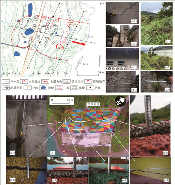 针对目前建筑物易损性定量评价中缺乏滑坡致灾强度预测研究,创新性地提出了一种基于InSAR技术的致灾强度经验曲线与ABAQUS二次开发的空间化位移预测相结合的建筑物易损性定量评价方法.以三峡库区石龙门滑坡为例,利用PS-InSAR解译的2017-2020年间滑坡年平均位移,通过函数反演获取了滑坡累积位移‒致灾强度经验曲线;使用ABAQUS编写荷载和孔隙水压力子程序模拟了极端工况下(库水位下降+强降雨)的滑坡累积位移,用于建筑物易损性预测计算.建筑物抗灾能力由PSO-Fuzzy AHP模型加权赋值8个指标构成,与滑坡致灾强度两部分相结合即可定量评价建筑物易损性.研究结果表明:(1)本文提出的抗灾能力评价体系能够很好表征三峡库区农村建筑物的结构特征,具备较高的评价精度;(2)基于PS-InSAR得到的上限致灾强度曲线为Ipu = 0.065 × Dtot0.236,具备更高的预测精度,有效减少了假阴性误报;(3)通过ABAQUS模拟的极端工况致灾强度随着降雨量增加而增加,预测的房屋易损性等级随之提高,并且成功预警了前期调查有明显变形的房屋.可见提出的致灾强度预测方法和易损性评价模型具有很高的空间辨识度和预警精度,通过滑坡强度信息能够开展实时建筑物易损性制图.