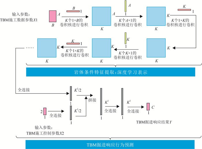 基于TBM施工数据进行围岩感知对保障TBM施工安全、提高施工效率至关重要,其中TBM掘进参数预测的准确率是检验围岩感知效果的重要依据.为此,以吉林引松工程TBM四标段为研究对象,选取TBM上升段破岩数据为输入特征X1,选择两个施工控制参数(刀盘转速和推进速度)为输入特征X2,构建卷积神经网络机器学习模型,对TBM掘进响应参数Y(刀盘扭矩和总推力)进行预测.按照学习对象的不同,分别构建了只学习稳定段掘进响应行为的点预测模型和同时学习上升段和稳定段掘进响应行为的线预测模型,结果表明:点预测模型无法描述控制参数对掘进响应参数的影响;线预测模型虽然可以描述控制参数对掘进响应参数的影响,但是对稳定段的掘进响应预测数值偏低.考虑到上述局限性的原因是稳定段行为样本数量只占总样本数量的9%,提出了一种通过调节损失函数的方法来提高稳定段行为样本的权重,显著提高了线预测模型的预测精度.改进后的结果表明:在TBM掘进参数预测中,应对整个掘进段的行为进行学习,并提高稳定段行为的权重,以便获得高精度的掘进响应参数预测模型.获得的模型能够为进一步的围岩感知和控制参数优化提供基础.