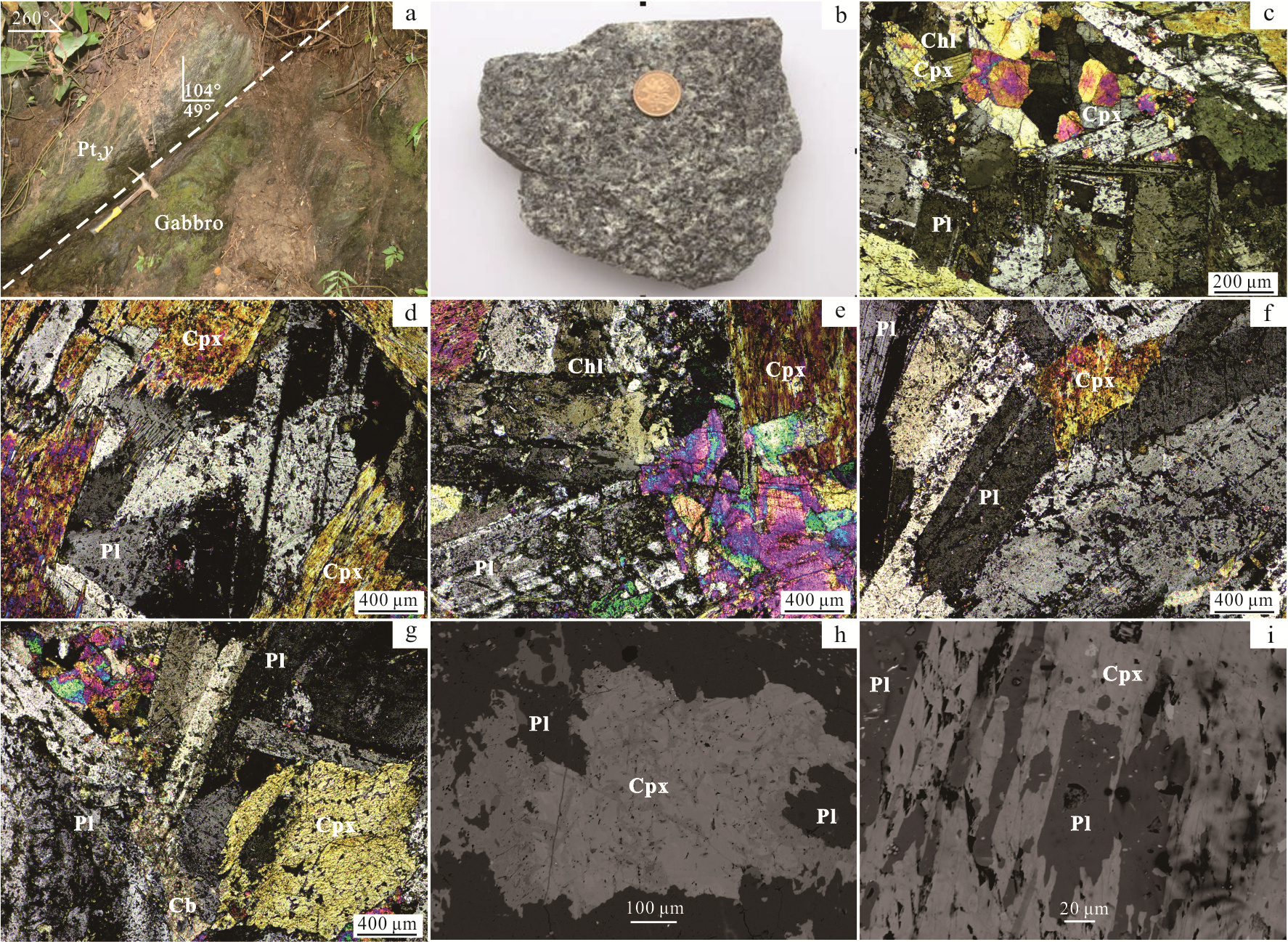 对桂东北鹰扬关地区新发现的罗家山辉长岩开展年代学、矿物学和矿物化学研究,可进一步约束区域构造背景.罗家山辉长岩的主要矿物为单斜辉石(Cpx)和斜长石(Pl).单斜辉石具有高铁铝、低钙钠钛的特征,其成分为Wo27~31En36~47Fs21~32,属于普通辉石;斜长石具有高硅铝钠、低钙钾的特点,其成分为An0~3Ab96~100Or0~2,属于钠长石.根据单斜辉石的化学成分判定罗家山辉长岩的母岩浆属于Si不饱和的亚碱性拉斑玄武岩系列.单斜辉石温压估算结果表明,罗家山辉长岩的形成温度介于1 282~1 292 ℃,平均值1 287 ℃;形成压力介于1.53~2.37 GPa,平均值2.02 GPa;对应深度介于50.49~78.21 km,平均值66.80 km. LA-ICP-MS锆石U-Pb年龄表明罗家山辉长岩形成于(768.9±6.8)Ma.单斜辉石的化学成分特征表明罗家山辉长岩属于典型的板内拉斑玄武岩.结合区域构造演化特征,推断罗家山辉长岩起源于地幔物质上涌、岩石圈减薄的伸展裂谷构造背景.