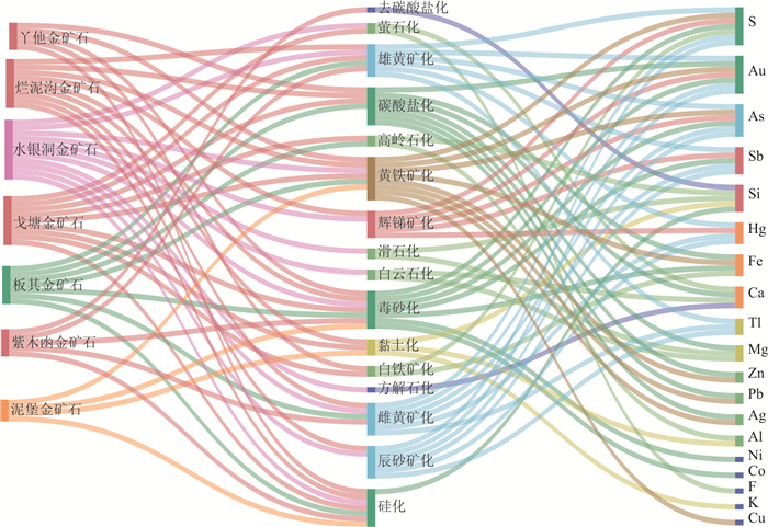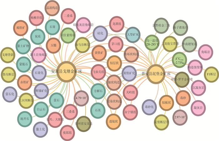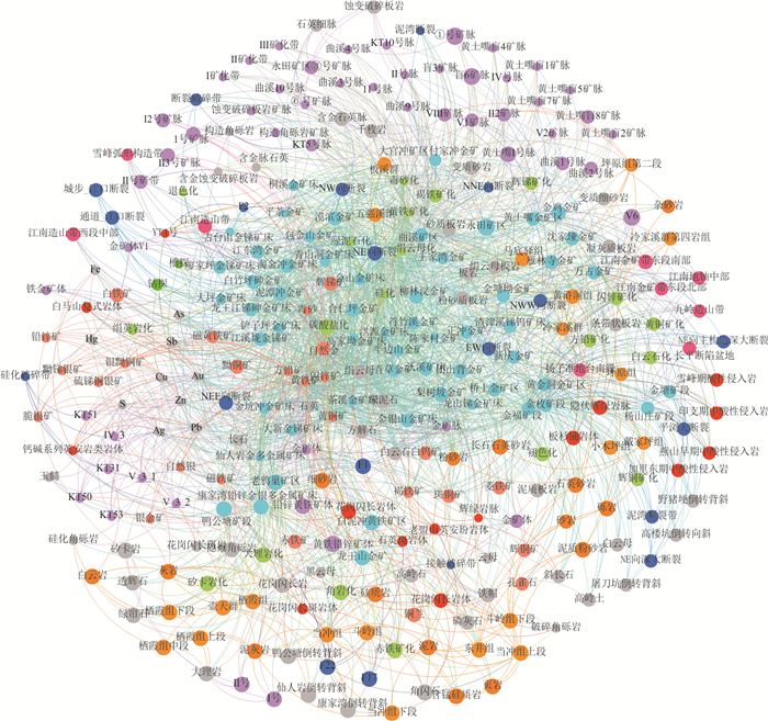 为深化对江南造山带金矿成矿规律的理解,进一步评估找矿潜力.本文以江南造山带及其邻区的金矿为研究对象,引入知识图谱技术,采用自上而下方法构建金矿领域知识模型,并综合利用深度学习与大语言模型构建金矿成矿‒勘查知识图谱;基于该知识图谱开展金矿社区聚类分析与Jaccard相似性评价,系统分析矿床聚集性特征.构建了含28类实体类型、10种语义关系类型的金矿领域知识模型,由此生成的知识图谱涵盖区域内60个代表性矿床,包含2 212条实体及5 497条语义关系.社区聚类分析成功提取了“蚀变‒矿物‒地层”等关键控矿要素组合及成矿规律;Jaccard系数分析显示,水口山、黄金洞金矿与世界大型‒超大型矿床具有高度相似性,揭示出两矿床具有巨大的深部及外围找矿潜力.