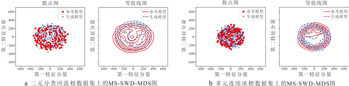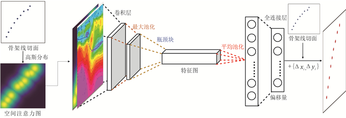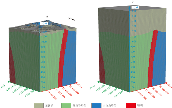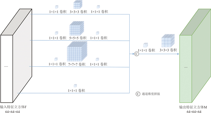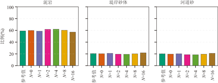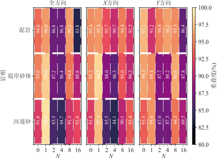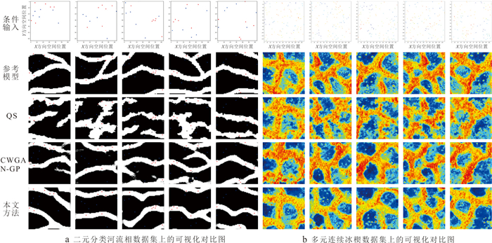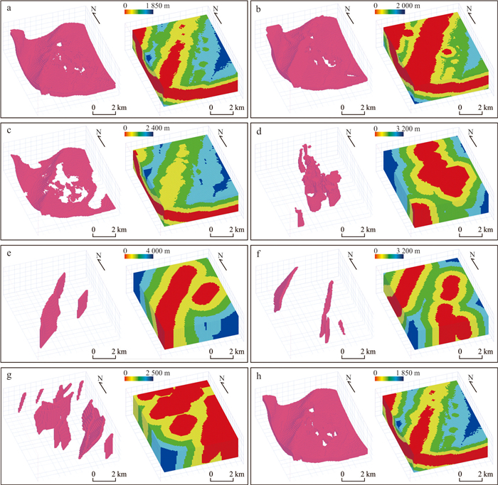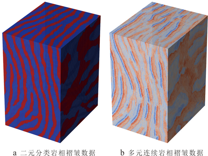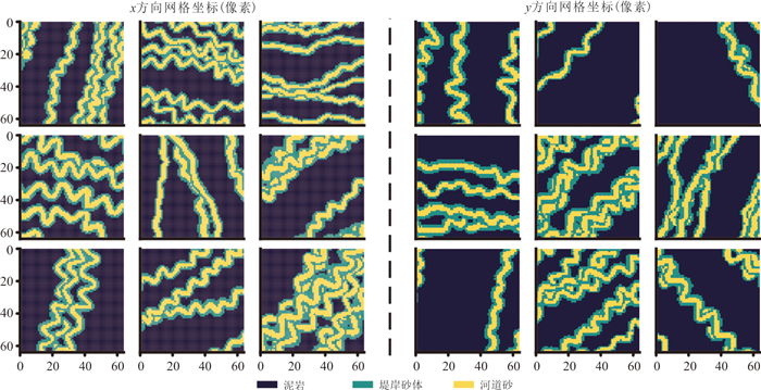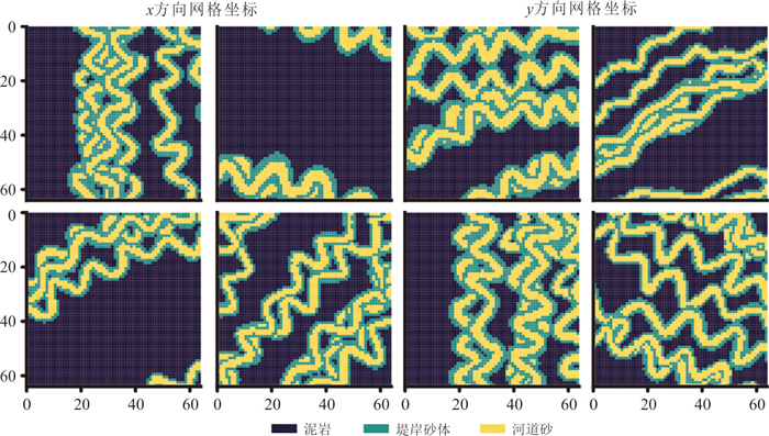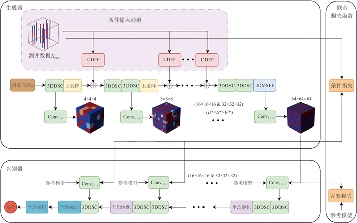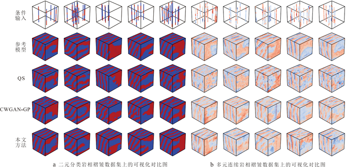 复杂地质结构建模在资源勘查、地下工程设计与地质灾害预测等领域具有重要意义. 生成对抗网络(GANs)在地质建模中展现出较强的非线性建模能力和模式迁移能力,但在处理复杂地质约束及精细结构重建时,其在建模精度、结构连通性及建模效率方面仍面临一些挑战. 针对上述问题,本文提出一种基于多尺度特征融合和深度可分离卷积的生成对抗网络地质建模方法,通过设计多尺度特征融合模块强化地质结构的细节表达与整体一致性,并引入深度可分离卷积以降低模型参数量和计算成本,提升建模效率. 同时,结合条件特征融合与渐进式分辨率生成策略,增强模型对条件数据的感知能力. 为验证方法的有效性,选取二维河流相、多属性冰楔和三维褶皱构造等典型数据,从空间变异性、连通性、属性一致性与条件点重建准确率等方面进行系统评估,并与多点统计方法(QS)和改进型生成对抗网络(CWGAN-GP)进行对比分析. 结果表明,在64×64和64×64×64的分辨率下,二维和三维四个数据集生成的模型MS-SWD指标分别为0.016、0.025和0.007 9、0.008 7,均显著低于对比方法;同时所生成模型的平均连通区域大小最接近参考模型(二维河流数据为300.59像素,三维褶皱数据为17 814.17像素);在整体准确度方面,本文方法的准确率和MSE指标均优于对比方法(分别为73.24%、69.48%和0.024、0.047),并通过效率分析和消融实验证明了该方法在效率和参数量方面的优势. 实验表明所提方法在保证合理与高保真性的同时,显著提升了建模效率,适用于复杂非平稳地质体的高效建模任务,具有广阔的工程应用前景.