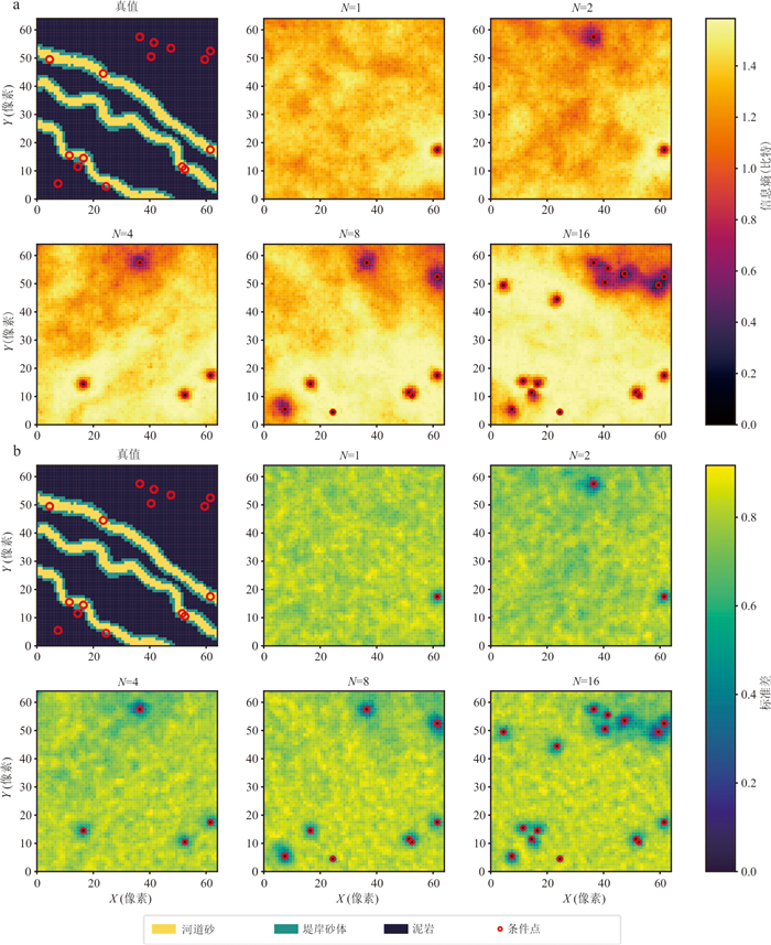 为了解决深度生成模型在硬数据约束下易发生模式崩溃和伪影的问题,本文提出一种分层自回归生成(Stratified Autoregressive Generation,SAG)框架.该框架利用离线训练的Transformer架构作为条件分布估计器,替代多点地质统计的在线搜索与计数过程;采用三级由粗到细的分层策略,先定义大尺度全局结构,再向细尺度传播约束,规避大网格上的二次计算复杂度.多组实验结果及多维尺度图与变差函数分析显示,本文方法生成的结果具备多样性,且准确再现了训练数据的全局统计特征与空间连续性;直方图交叉量化评估证实了无伪影的高局部模式保真度;不确定性评估显示不确定度由硬数据点向外逐渐增加,收敛模式符合地质规律.本文提出的方法在不同数量的硬数据约束下,其结果保持了空间连续性和样本多样性,实现了复杂储层结构及物性的准确表征.