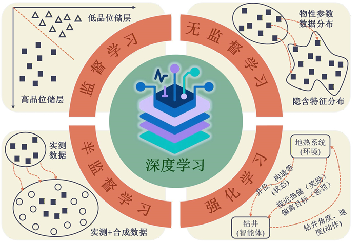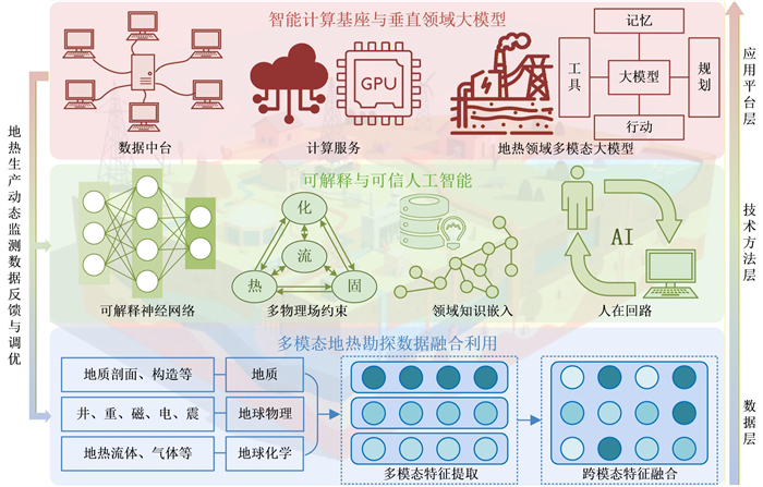 全球深层地热资源勘探开发正处于从“实验性探索”向“规模化应用”转型的关键阶段.以深度学习为代表的人工智能已经在大数据分析、模式识别和非线性问题求解方面展现出变革性潜力,为破解当前制约我国深层地热资源高效精准勘探的核心难题提供了新途径.推动深度学习与传统地热勘探流程的深度融合,对我国在全球深层地热资源开发利用领域提升竞争力具有重要意义.本文聚焦深度学习数据处理、建模及预测技术与深层地热资源勘探(涵盖地热地质勘查、地球物理勘探、地球化学勘探等环节)的深度结合,系统梳理并总结了地热资源勘探技术、深度学习技术方法、深度学习赋能深层地热资源勘探的关键技术方法、核心进展与研究成果,展现了深度学习赋能地热资源勘探方法相较于传统方法带来的效率、准确率与精度提升.本文最后结合前沿技术阐述了深度学习赋能深层地热资源勘探领域面临的核心挑战,未来深层地热资源智能勘探亟须聚焦多模态数据融合、可解释与可信人工智能、地热垂直领域智能计算基座与大模型建设等方面,最终实现从“经验驱动”到“知识驱动”再到“智能驱动”的跨越,为地热能源资源行业数字化智能化发展提供核心技术支撑.