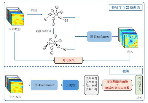 建立能兼顾多元素地球化学空谱特征、有效拟合数据复杂分布的检测模型,是识别异常区域的关键.针对新疆东昆仑高海拔深切割浅覆盖地区地球化学找矿异常提取难题,本研究提出一种空谱特征-空间关联双分支模型(Spatial-Spectral Feature and Global Spatial Correlation Network,SSGSNet),空谱特征分支基于ResNet残差块,融入双重注意力模块提取局部空谱特征;空间关联分支通过patch嵌入和自注意力机制挖掘全局空间关联特征.融入构造数据提高了地球化学综合异常找矿的准度,SHAP值也解释了模型中断裂的关键作用.实验结果表明,SSGSNet模型的AUC值达0.945 3,显著优于ResNet、ViT单模型和普通的空谱双分支模型.野外查证显示,遥西、巴什干克等4处高异常区均发现不同程度金矿化现象,证实该模型可有效解决复杂背景下地球化学异常信息提取难题,为覆盖区矿产勘探提供了可靠的技术支撑与靶区指导.
