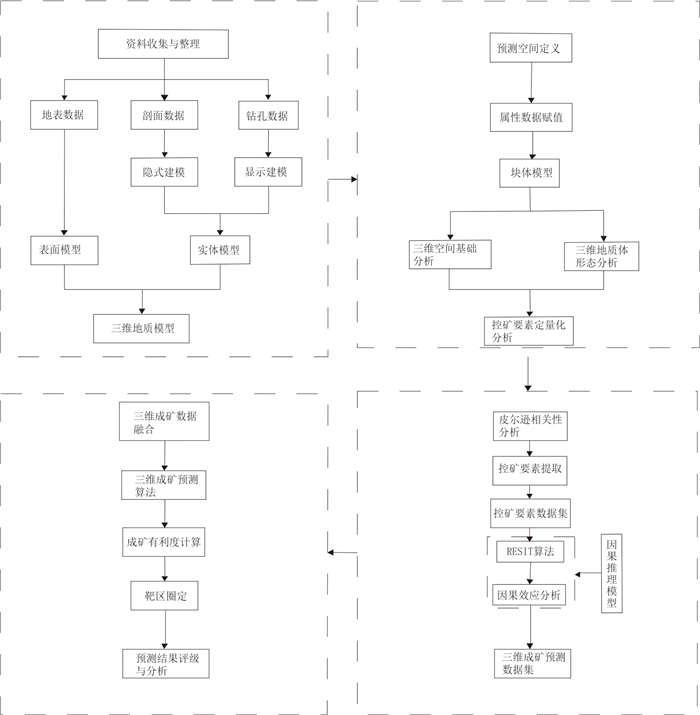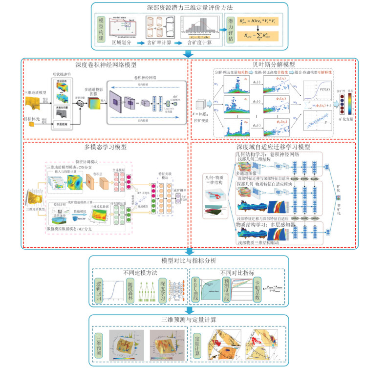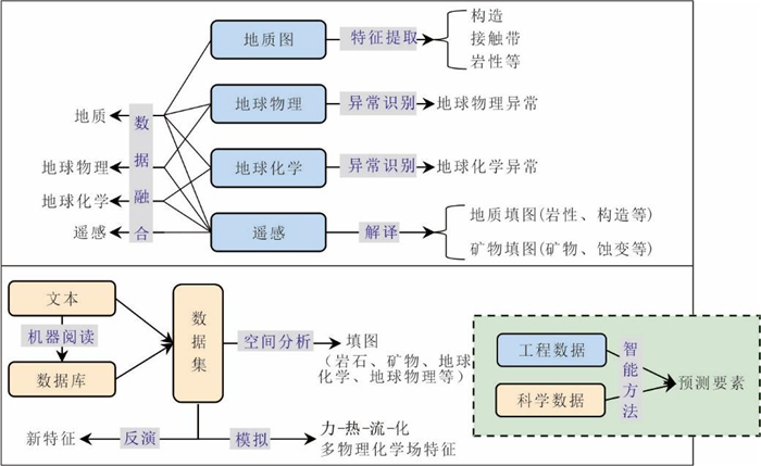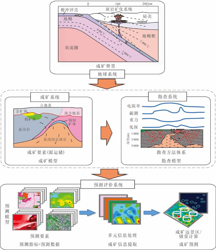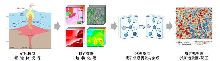 随着大数据和人工智能技术的迅猛发展,矿产预测正在经历一场由数据稀疏型向数据密集型的技术变革,成为矿产勘查和找矿突破的重要“科技引擎”.尽管人们在地质信息化的进程中已经积累了大量的地质矿产、地球物理、地球化学和遥感等多源异构工程探测数据,以及丰富的地质报告和文献资源,但如何高效整合并深度挖掘这些数据,以进一步优化矿产预测指标体系、构建高质量矿产预测数据集、提升预测精度,仍是当前研究亟待解决的关键问题.针对这些挑战,本文提出利用大模型和知识图谱技术,整合地球系统、成矿系统、勘查系统与预测评价系统的多层次、多维度知识信息,打造多系统耦合的矿产预测知识图谱,实现矿产预测指标体系的智能化构建.同时,基于大数据和人工智能技术,形成以地学探测数据智能挖掘、科学数据智能抽取和时空分析,以及数据智能反演和模拟为核心的多层次矿产预测数据体系.这一方法体系通过推动预测数据与预测指标的深度耦合,可有效提升预测结果的准确性和可靠性,为矿产勘查和找矿突破提供强有力的技术支持.