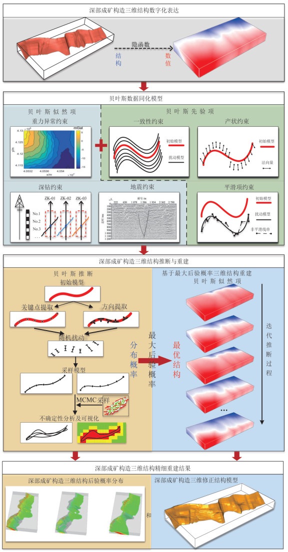矿产资源是国家经济安全与工业化发展的关键保障.随着浅部资源的日益枯竭,在矿山深部寻找可接替资源已成为保障资源安全的必然选择.然而,深部找矿面临位置深、直接信息少、间接信息弱等问题,亟须突破矿床深部结构不清、深部控矿规律隐蔽、深部矿体空间定位难度大等关键技术难题,传统矿产资源定量预测方法难以满足深部矿体三维空间精准定位需求.为此,本文系统阐述了深部矿产三维智能预测理论与方法及其挑战.该理论与方法以成矿系统和数据科学理论为指导,初步突破了“矿床深部三维结构重建的地质‒地球物理‒地球化学约束”、“矿床深部三维结构对矿化空间定位的控制机制”两大关键科学问题,形成了“地质解析‒精细建模‒三维分析‒智能预测”方法框架,建立了以矿床深部结构三维精细重建、深部结构几何‒物质分析、深部矿体三维定位智能预测为核心的理论方法与技术体系.其核心技术包括:(1)基于多源异构数据同化与贝叶斯推断的矿床深部三维结构精细重建;(2)融合多级构造样式与成矿过程模拟的三维结构几何‒物质成矿信息智能提取;(3)应用深度神经网络、域自适应及多模态学习等人工智能技术的深部矿体三维智能定位预测.这一理论方法初步实现了深部结构重建的自动化、控矿规律表征的定量化与矿体定位预测的智能化,并在我国胶东、金川等重要矿集区/矿区的深部找矿实践中取得显著成效.本文最后从深部三维结构精细建模多源数据同化、空间结构‒成矿物质耦合成矿信息表征、大语言模型驱动深部矿体三维定位预测等视角探讨了深部矿产三维智能预测的未来挑战与发展方向,以期进一步促进深部找矿预测的深度智能化发展.