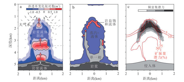数值模拟方法为定量解析岩浆热液矿床的成矿过程提供了关键技术手段,对揭示控矿机理与指导成矿预测研究具有重要意义.近年来,伴随计算地球科学的迅速发展,成矿过程数值模拟研究取得了显著进展,在多个层面为成矿预测提供了有力支撑.本文系统梳理了成矿过程数值模拟的基本理论与方法,综合评述了当前数值模拟在刻画成矿过程、解析控矿机理以及支撑成矿预测等方面的研究现状,并对数值模拟方法在未来成矿预测中的发展方向作出展望.未来研究将在力‒热‒化‒流全耦合模拟、高性能数值算法开发以及多元信息智能融合等方面持续深化,共同推动成矿预测向物理机制与数据协同驱动的新范式发展.