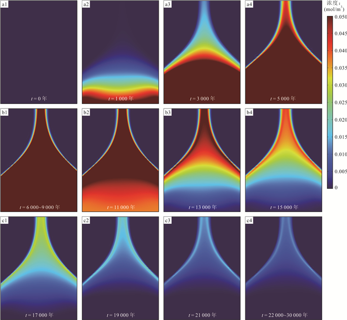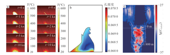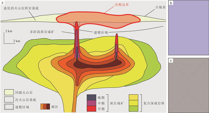 斑岩型矿床在全球范围内广泛分布,其成矿机制具有重要的科研价值.成矿过程数值模拟方法是研究岩浆‒热液成矿系统的重要方法,该方法能够定量、连续分析成矿作用过程,为矿化/蚀变时空分布、成矿流体迁移‒演化等问题提供解答.本研究建立了斑岩型矿床简单几何模型,并基于该模型开展了成矿过程多物理场(热‒流‒化‒质)耦合数值模拟研究.结果表明,在成矿模拟研究中使用简单几何模型具有可行性,对深部找矿靶区预测、解释大型‒超大型斑岩型矿床成因具有一定的启示意义;该方法不仅可以用来计算矿化空间分布并实现深部找矿预测,还可以通过不同的矿化分布形式来反推成矿时期的构造环境,从而更深入地研究古成矿环境等问题;此外,简单模型具有计算量少、人为影响微弱、可信度高等特点,能够在一些特定的成矿理论问题研究中发挥重要作用.