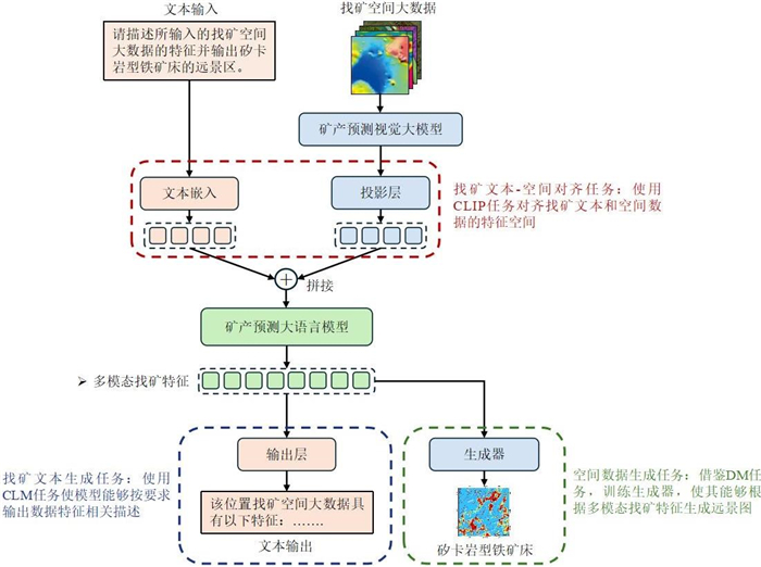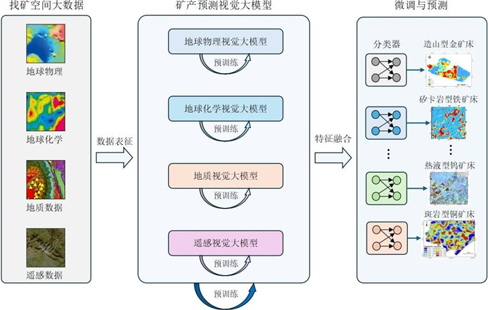 大数据人工智能驱动的矿产预测已成为矿产勘查的重要方向,但现有方法普遍存在泛化能力弱、迁移性差、可解释性不足等问题,难以实现跨区域应用.以“预训练-微调”为核心范式的大模型在自然语言处理、计算机视觉等领域展现出卓越的跨任务迁移能力和强泛化性,为突破上述瓶颈提供了可行路径.研发矿产预测大模型,对创新找矿范式、提升勘查效率具有重要探索价值,是智能矿产预测发展的新方向.本文聚焦大语言模型、视觉大模型及多模态大模型的技术特性,系统梳理了大模型的发展历程与构建流程.在此基础上,剖析了现有矿产预测大模型的技术路径与局限,探讨了面向矿产预测语言、视觉和多模态大模型的构建思路,分析了构建矿产预测大模型面临的挑战,为进一步研发矿产预测大模型提供参考.