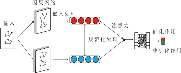 本文提出了一种融合因果推理与图注意力网络的三维成矿预测方法,旨在提升复杂地质环境下对深部隐伏矽卡岩型铜矿床的预测精度与效率.研究以长江中下游成矿带的安庆地区为例,基于地质图、钻孔资料和地球物理数据,采用显式与隐式相结合的建模方法,构建了涵盖地层、岩体、断层及矿体的高精度三维地质模型.在此基础上,利用基于非高斯假设的RESIT因果推理算法,对62类控矿要素进行分析,识别并构建因果图,最终筛选出14个核心控矿变量.随后,结合三维空间邻接关系构建预测数据集,并将因果结构引入GAT模型以进行矿化概率预测.对比实验结果表明,该方法在准确率、AUC值及成功率曲线等指标上均优于随机森林、支持向量机、图卷积网络和三维卷积网络等常用方法.基于该模型预测,本文圈定了四个与闪长岩侵入体及三叠系碳酸盐岩接触带密切相关的深部高潜力成矿靶区.研究成果表明,因果推理与深度图学习的结合不仅能够提升预测性能,还增强了模型的地质可解释性,为深部矿产资源勘查提供了一条新的技术路径.