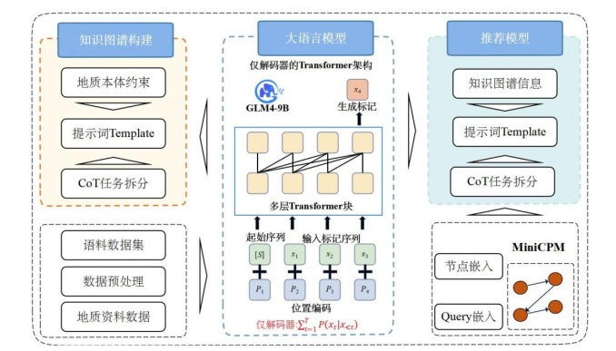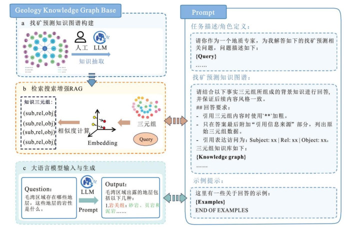 以大语言模型为代表的新一代人工智能技术为地学知识的结构化表达与智能推理提供了新机遇.针对地质领域知识体系复杂,非结构化文本语义分散、难以再利用和可视化的问题,本文以华南稀有金属矿床为研究对象,提出了一种融合矿床成因与找矿标志的统一知识图谱构建策略.研究基于DeepSeek R1-32B大语言模型与提示词工程,从大量地质文献中自动抽取并构建了涵盖Li、Be、Nb、Ta等关键稀有矿种的知识图谱.知识图谱及其拓展性分析的结果表明,华南稀有金属成矿与印支期、燕山期岩浆活动密切相关,具有显著的高分异与岩浆热液作用特征;稀有金属元素呈现Li-Be-Nb-Ta-W-Sn的组合异常.综上所述,基于大语言模型构建的知识图谱揭示了华南稀有金属成矿的多阶段成矿机制,阐明了稀有金属矿床在地球化学异常、构造控制及蚀变分带方面的内在联系,为华南及邻区的稀有金属勘查提供了智能化研究方案.