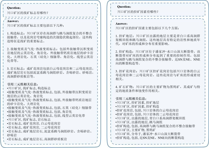 当前地质找矿领域的大语言模型应用面临着专业知识不足、数据隐私安全和模型幻觉等问题,同时大语言模型在地质找矿领域应用中仍缺乏高效快捷的知识推荐手段.本研究提出了知识图谱与检索增强生成相结合的KG-RAG(Knowledge Graph Retrieval-Augmented Generation)框架,以大语言模型为工具,在地质本体约束下实现了地质找矿知识图谱的自动化抽取和结构化表达,同时利用知识图谱的多跳检索算法实现检索内容的深度与广度优化,构建了地质找矿智能知识问答模型.实验结果表明:在知识图谱构建任务中,KG-RAG的准确率、召回率和可信度(F1分数)分别为0.807、0.833和0.819,相比大语言基模型GLM4-9B的直接知识抽取,分别取得了约50%、8%和29%的提升;在问答任务中,KG-RAG召回率和准确率分别为0.917和0.88,相比文档向量检索增强生成方法分别取得了约24%和22%的提升.KG-RAG在知识图谱构建与智能问答两方面均表现出了较好的性能,能够有效从地质资料中进行地质找矿知识收集与表达,支持地质工作者的地质调查与找矿预测工作,本研究为大语言模型与知识图谱的联合应用提供了借鉴.
