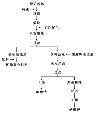 Chen, H., 1999. Synthesizing zeolite molecular sieves from the potash slate of Bayan Obo, with relevance to comprehensive utilization (Dissertation). China University of Geosciences, Beijing, 1-55 (in Chinese). Davidovits, J., 1988. Geopolymer chemistry and properties. Geopolymer'88, 1st European Conference on Soft Mineralurge, Compiegne, France, 1: 25-48. Davidovits, J., 1993. Geopolymer cements to minimize carbon dioxide greenhouse-warming. Ceram. Trans. , 37: 165-182. Ding, Q. X., Ma, H. W., Wang, G., et al., 2003. Preparation of quartz-based mineral polymer: An experi mentalstudy. New Building Materials, (12): 6-8 (in Chinese with English abstract). Feng, W. W., Ma, H. W., 2004. Thermodynamic analysis and experiments on thermal decomposition for potassium feldspar at intermediate temperatures. Journal of the Chinese Ceramic Society, 32 (7): 789-799. Feng, W. W., Ma, H. W., Wang, G., et al., 2004a. Preparation of lightweight geopolymer from inflated pearlite: An experimental study. Journal of Materials Science & Engineering, 22 (2): 233-239 (in Chinese with English abstract). Feng, W. W., Ma, H. W., Zhao, Y. X., 2004b. Preparation of lightweight wall materials based on inflated pearlite from colloidal aluminosilicate waste residue. Journal of the Chinese Ceramic Society, 32 (11): 1410-1417 (in Chinese with English abstract). Frantz, J. D., 1998. Raman spectra of potassium carbonate and bicarbonate aqueous fluids at elevated temperatures and pressures: Comparison with theoretical simulations. Chemical Geology, (152): 211-225. Guillet, G. R., 1994. Nepheline syenite. In: Carr, D. D., ed., Industrial minerals and rocks. Society for Mining, Metallurgy, and Exploration, Inc. Littleton, Colorado, 711-730. Ikeda, K., 1998. Consolidation of mineral powders by the geopolymer binder technique for materials use. Shigen to Sozai, 114: 497-500. doi: 10.2473/shigentosozai.114.497 Ikeda, K., Feng, D., Mikuni, A., 2005. Recent development of geopolymer technique. Earth Science Frontiers, 12 (1): 206-213. Ji, Z., Li, Y. J., Song, D., 1987. A method for purifying solution of potassium carbonate. China Patent, CN8601220A. Li, H. X., Ma, H. W., 2006. Thermal decomposition of mullite and silicate glass in high-alumina flyash. Bulletin of the Chinese Ceramic Society, 25 (4): 1-5 (in Chinese with English abstract). Li, Z. Y., 2004. The current status and development aspect of potassium carbonate industry at home. Hebei Chemical Engineering, (3): 28-29, 64 (in Chinese with English abstract). Ma, H. W., Bai, Z. M., Yang, J., et al., 2005a. Preparation of potassium carbonate from insoluble potash ores: With 13X molecular sieve coproduct. Earth Science Frontiers, 12 (1): 137-155 (in Chinese with English abstract). Ma, H. W., Feng, W. W., Miao, S. D., et al., 2005b. New type of potassium deposit: Modal analysis and preparation of potassium carbonate. Science in China (Ser. D), 48 (11): 1932-1941. Ma, H. W., Ling, F. K., Yang, J., et al., 2002a. Preparation of mineral polymer from potassium feldspar wastes: An experimental study. Earth Science-Journal of China University of Geosciences, 27 (5): 576-583 (in Chinese with English abstract). Ma, H. W., Yang, J., Ren, Y. F., et al., 2002b. Mineral polymer: Current developments and prospects. Earth Science Frontiers, 9 (4): 397-407 (in Chinese with English abstract). Ma, H. W., Wang, Y. B., Miao, S. D., et al., 2003a. A technique for preparation of electronic grade potassium carbonate from potash rocks. China Patent, No. ZL03100563.2, 2006-11-08. Ma, H. W., Yang, J., Wang, G., et al., 2003b. A technique for production of mineral polymer from potassium feldspar. China Patent, No. ZL03100562.4, 2006-11-08. Ma, H. W., Yang, J., Liu, H., et al., 2006. Chemical equilibrium in silicate systems: Part 1. Mass balance principle. Geoscience, 20 (2): 329-339 (in Chinese with English abstract). Mysen, B. O., 1990. Relationships between silicate melt structure and petrological processes. Earth-Science Reviews, 27: 281-365. doi: 10.1016/0012-8252(90)90055-Z Van Deventer, J. S. J., Xu, H., 2002. Geopolymerization of aluminosilicates: Relevance to the minerals industry. The Aus. IMM Bulletin, 1: 20-27. Wang, G., Ma, H. W., Feng, W. W., et al., 2003. Preparation of geopolymer from flyash and aluminosilicate residue after extraction of potassium carbonate from potash rocks: An experimental study. Acta Petrologica et Mineralogica, 22 (4): 453-457 (in Chinese with English abstract). Wang, Z. Z., 1998. Review on production of potassium carbonate by ion-film-flowing bed technique. Sea and Lake Salt Chemical Engineering, 27 (2): 18-21 (in Chinese with English abstract). Xu, H., Van Deventer, J. S. J., 2000. The geopolymerization of alumino-silicate minerals. Int. J. Miner. Process, 59: 247-266. doi: 10.1016/S0301-7516(99)00074-5 陈煌, 1999. 白云鄂博富钾板岩合成沸石分子筛及综合利用研究[硕士学位论文]. 北京: 中国地质大学, 1-55. 丁秋霞, 马鸿文, 王刚, 等, 2003. 利用石英砂制备矿物聚合材料的实验研究. 新型建筑材料, (12): 6-8. doi: 10.3969/j.issn.1001-702X.2003.12.003 冯武威, 马鸿文, 王刚, 等, 2004a. 利用膨胀珍珠岩制备轻质矿物聚合材料的实验研究. 材料科学与工程学报, 22 (2): 233-239. https://www.cnki.com.cn/Article/CJFDTOTAL-CLKX200402019.htm 冯武威, 马鸿文, 赵印香, 2004b. 利用提钾废渣制备膨胀珍珠岩轻质墙体材料. 硅酸盐学报, 32 (11): 1410-1417. https://www.cnki.com.cn/Article/CJFDTOTAL-GXYB200411018.htm 纪柱, 李玉娟, 宋铎, 1987. 碳酸钾溶液的提纯方法. 中国专利: CN8601220A. 李贺香, 马鸿文, 2006. 高铝粉煤灰中莫来石及硅酸盐玻璃相的热分解过程. 硅酸盐通报, 25 (4): 1-5. doi: 10.3969/j.issn.1001-1625.2006.04.001 李占远, 2004. 我国碳酸钾现状及前景展望. 河北化工, (3): 28-29, 64. https://www.cnki.com.cn/Article/CJFDTOTAL-HHGZ200403008.htm 马鸿文, 白志民, 杨静, 等, 2005a. 非水溶性钾矿制