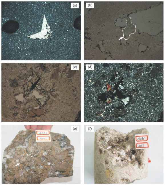 通过对研究区下古生界取心井的岩心描述、镜下(包括偏光显微镜和扫描电镜)观察,并对目的层段声波时差、密度、自然伽马等测井参数进行分析,发现研究区下古生界硅岩段与原生硅岩的岩-电特征明显不同,本文称之为“硅化岩”,并总结了硅化岩段的特征.研究区下古生界硅化岩之原岩残留结构清晰、硅岩晶粒自形程度高;硅化岩段常出现热水矿物萤石、重晶石、黄铁矿、铁方解石、石英等的共生组合,且次生热水矿物的再次溶蚀特征显著;硅岩段孔隙极为发育,不但有角砾间溶洞、溶缝,次生矿物溶蚀也形成溶洞、裂缝等有效储集空间,另外,自形石英晶簇的晶间微孔隙也十分发育;与碳酸盐岩相比硅化岩段具有极低速度、较低密度特点,且其分布具有“穿层性”.通过与下古生界原生硅岩特征进行对比,认为桩海地区下古生界硅化岩为次生成因,其形成是埋藏溶蚀作用的结果.次生硅化岩为下古生界潜山中一种新的储层类型.这种新储层类型的发现不但对中国东部陆相盆地高成熟探区的油气挖潜具有重要的实际意义,而且对于进一步丰富硅岩理论、推动硅岩研究进展也具有一定的学术价值.