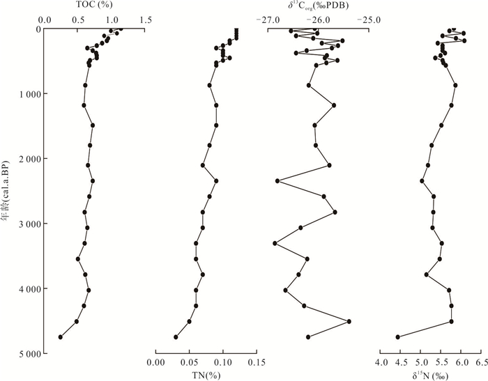 为了更好地理解目前南极冰盖与气候的演化,以及为未来冰盖和气候变化的预测提供依据,通过对A11-02孔沉积物的有机碳、氮含量与稳定同位素值进行分析,结合粒度和地球化学元素等特征,探讨了中全新世以来西南极阿蒙森海沉积物有机质的来源及古气候意义. 沉积物的δ13Corg值指示有机质主要为海源输入,陆源有机质贡献相对较少. 通过分析沉积物总有机碳含量及海源有机质含量变化,结合粒度及元素的变化特征,认为中全新世以来研究区古生产力的变化主要与气候变化有关,进而识别出4 750~4 500 a BP、3 600~3 400 a BP、2 250~2 000 a BP和600~400 a BP 4个寒冷阶段.