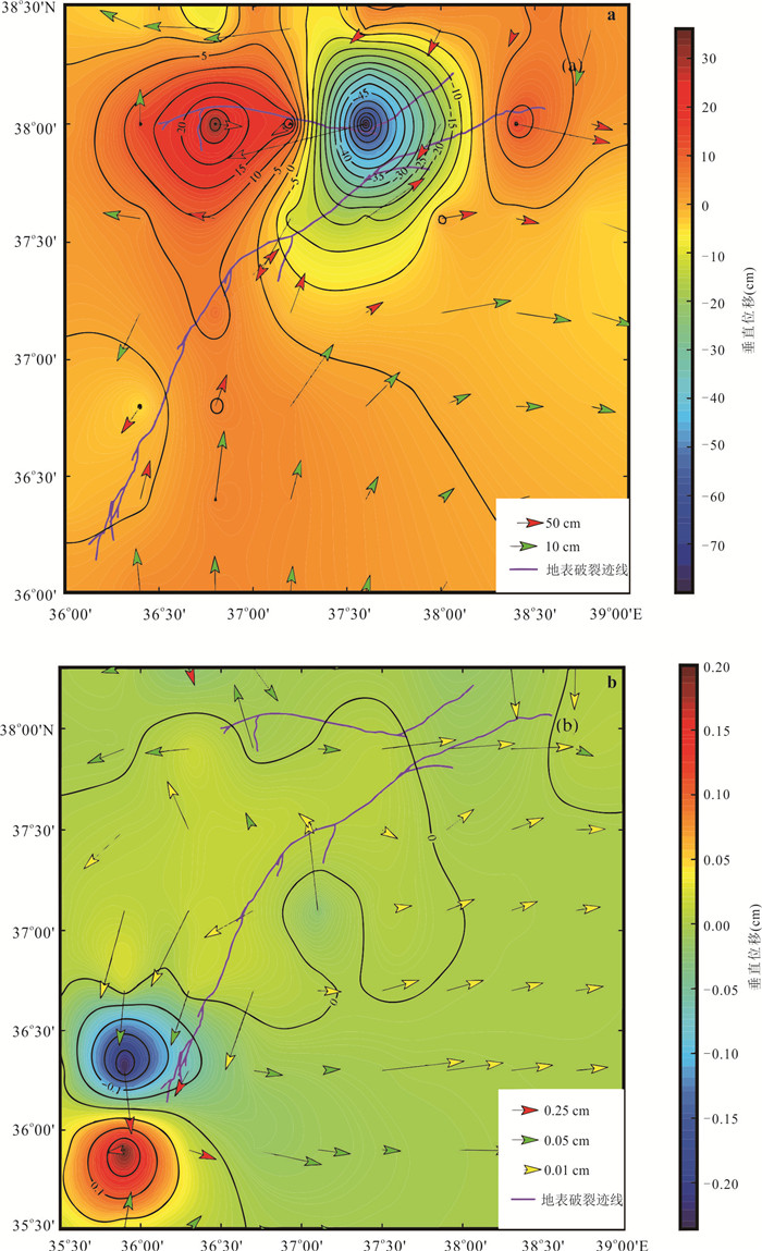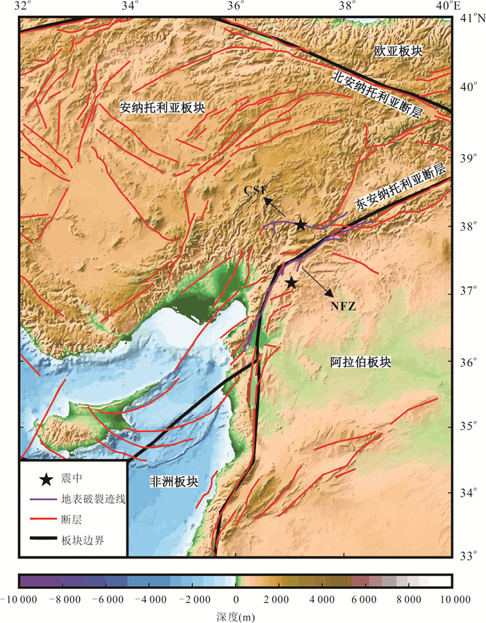 2023年2月6日土耳其发生了两次震级大于7.0级的破坏性大地震. 迄今为止,用不同观测资料得到的土耳其破裂模型仍存在较大的差异,其中美国地质调查局给出的有限断层模型是目前所能得到的最为准确的一个综合性模型,所以我们选择采用美国地质调查局给出的有限断层模型作为本研究的先验模型,并结合哨兵一号获取的InSAR观测数据反演出土耳其双震的同震破裂分布,得到的结果如下:(1)反演得出的总地震矩为1.626 8 × 1021 N∙m,相当于一次Mw8.1级的大地震;(2)在东安纳托利亚主断层上的破裂多集中在地下0~15 km的范围内,东安纳托利亚北部分支断层Çardak-Sürgü断裂带上的破裂多集中在地下5~20 km范围内. 在东安纳托利亚主断层中,破裂呈现为两个明显的高值区,一处位于Narlıdağ断裂带与东安纳托利亚主断层的交汇处,另一处位于Narlıdağ断裂带与东安纳托利亚主断层的交汇处往西南方向大约65 km的位置,其中破裂的最大走滑分量可达到9.0 m,最大的倾滑分量约为3.0 m;在Çardak-Sürgü断裂带中,总体形态表现为两个高值区,一个位于7.5级土耳其地震的震中附近,一个则是位于Çardak-Sürgü断层西北角东南-西北走向与东北-西南走向断层的交汇处,其中走滑分量的最大值约为8.1 m,倾滑分量的最值约为6.1 m. 土耳其双震产生的破裂以走滑分量为主,倾滑分量为辅,且两个发震断层东安纳托利亚主断层和Çardak-Sürgü断裂带总体都呈现为左旋走滑性质,但在局部范围内也呈现出明显的逆冲性质与正断性质.