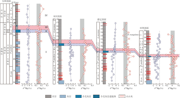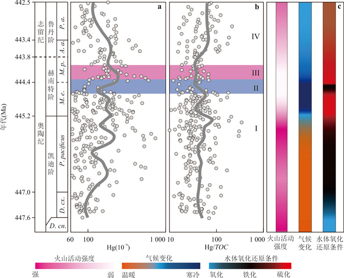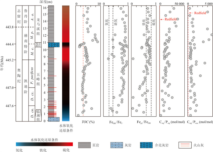 大规模火山活动被认为是全球环境气候变化及生物多样性波动的重要驱动机制之一.它不仅能够促进海洋水体表层生产力提高,也可增强其底部水体硫化缺氧程度,从而有利于有机质沉积富集.奥陶纪-志留纪转折期全球火山活动频繁,伴随着广泛的黑色页岩沉积,并集中发育着异常高有机质层段(TOC≥3.0%).基于来自中国华南地区五峰组-龙马溪组20余个典型钻井和露头剖面的800余件样品的数据(包括TOC、主微量元素与汞含量及汞同位素等),总结了奥陶纪-志留纪转折期显性火山灰的赋存状态和识别特征,归纳了主微量元素与汞含量及汞同位素对隐性火山灰的示踪作用,系统探讨了该时期火山活动对海洋环境演化和异常高有机质沉积的潜在影响.结果表明:(1)显性与隐性火山灰的分布特征为重建该时期火山活动的历史轨迹提供了重要依据;(2)火山活动通过向海洋中输入大量磷,促进海洋表层初级生产力提高,并驱动了海洋底部缺氧水体扩张;(3)缺氧水体加剧了磷的重循环作用,进一步提高了初级生产力;(4)火山活动增强的风化作用加大了陆地硫酸盐输入,能够进一步促进海洋底部水体硫化缺氧程度.奥陶纪末期华南地区持续的火山活动及其相关效应,促进了奥陶纪-志留纪转折期海洋表层初级生产力提高和底部水体硫化缺氧扩张,最终促使该区五峰组-龙马溪组的异常高有机质规模沉积.