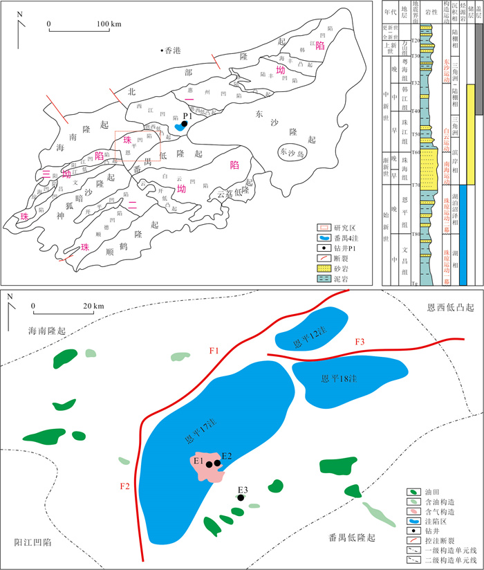 为明晰珠江口盆地恩平17洼主力烃源岩特征和有效烃源灶分布,系统分析洼陷地质背景、烃源岩发育环境和地化特征,借助热压模拟实验分析烃源岩生烃特征,建立烃源岩TOC概率神经网络预测模型,结合烃源岩热演化模拟和有效烃源岩TOC下限判识,预测有效烃源灶分布.结果表明恩平17洼主要发育文昌组半深湖-深湖相和浅湖相两套烃源岩,半深湖-深湖相烃源岩油气产率均较高,具有“生油集中,晚期爆发式生气”特征;浅湖相烃源岩气产率相对较高,具有“宽窗持续生气,生气下限较高”的特征.有效烃源灶分布于TOC大于1.2%的区域,平面上主要分布在洼陷中心和北部近洼区,垂向上主要分布于文四段,其次为文三段和文五段,相带上以半深湖-深湖相为主,其次为浅湖相,在高热演化作用下,油气兼生,具备发育规模天然气潜力,为珠江口盆地富油洼陷寻找天然气提供资源基础.