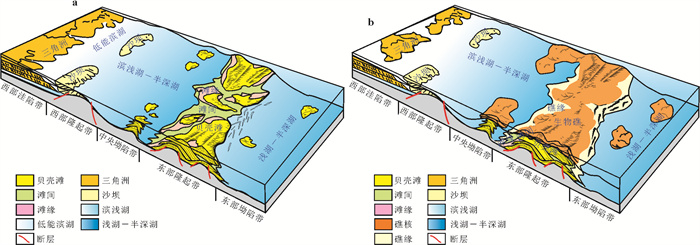 巴西桑托斯盆地裂谷期(早白垩世巴雷姆期-阿普特期)发育世界级大型湖相碳酸盐岩,目前已在该领域获得大量的油气发现,是世界油气勘探的热点领域.碳酸盐岩发育程度是该盆地油气能否富集成藏的关键.钻井揭示该盆地裂谷期发育“两期两类”湖相碳酸盐岩:早期断坳转换期(巴雷姆晚期-阿普特期)Itapema(ITP)组贝壳灰岩和晚期坳陷期(阿普特中-晚期)Barra Velha(BV)组微生物礁灰岩.这“两期两类”湖相碳酸盐岩虽均为生物灰岩,但其成因机制和岩性组合差异较大,为厘清“两期两类”湖相碳酸盐岩沉积差异及发育主控因素,基于薄片、岩心、测井、地震等数据资料,对该盆地两类盐下湖相碳酸盐岩开展了系统的微观、宏观相结合的岩石学、沉积学研究.综合研究分析表明巴西桑托斯盆地下白垩统大型湖相碳酸盐岩发育主要受古地貌、古湖水盐度和古水体能量变化控制,其中古地貌控制了湖相碳酸盐岩储层沉积微相展布和发育程度,古水体盐度控制湖相碳酸盐岩岩石类型垂向演化,古水体能量变化和水深控制湖相碳酸盐岩微相平面变化.最终明确迎浪高能淡水环境为ITP组贝壳灰岩储层发育有利背景,而迎浪清浅的中-高能半咸水-咸水环境是BV组叠层石灰岩储层发育有利背景,这为寻找有利储层发育区带指明了方向,对巴西盐下湖相碳酸盐岩油气勘探具有实际指导意义.