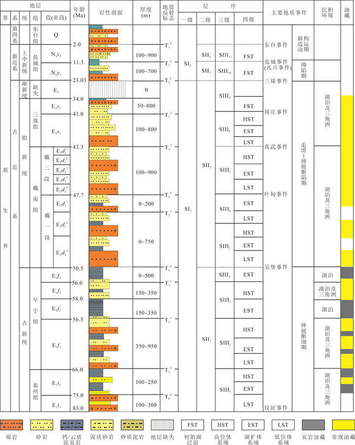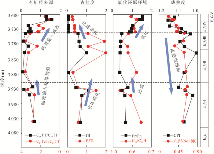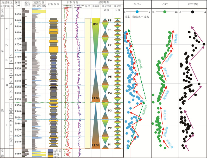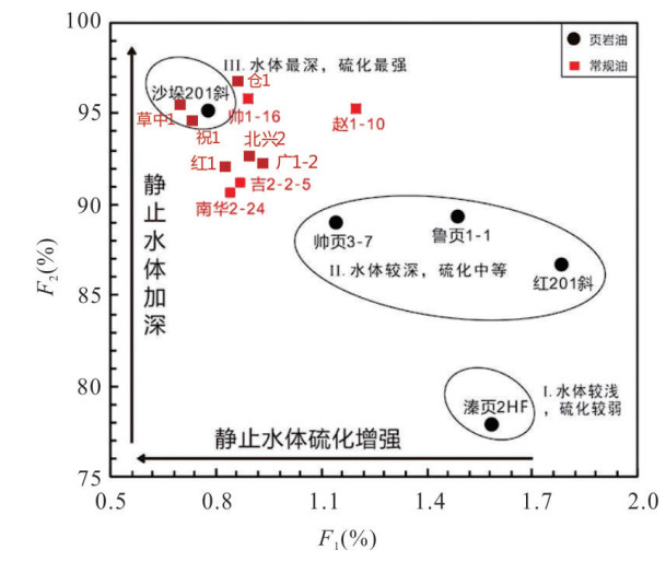 随着湖相页岩油勘探开发不断深入,苏北盆地溱潼凹陷已进入全油气系统评价阶段.前人开展的油源对比研究侧重烃源岩发育时期湖水盐度变化对生物标志化合物的影响,难以满足“同时异相”烃源岩的全油气系统油源对比要求.本文在古气候驱动旋回地层及其对烃源岩发育控制作用分析的基础上,分析了溱潼凹陷11件页岩油和常规原油样品中反映硫化生境的芳基类异戊二烯烃生标,并进行全油气系统油源对比;同时,运用2,3,6-芳基类异戊二烯烃(2,3,6-AIPs)和2,3,4-芳基类异戊二烯烃(2,3,4-AIPs)构造的C3=Σ(2,3,6-AIPs)/Σ(2,3,4-AIPs)和C4=Σ(2,3,6-AIPs)/Σ(2,3,4-AIPs)+ Σ(2,3,6-AIPs).指标,分别计算了页岩油和常规原油烃源岩的相对硫化强度和相对古水深.结果表明:(1)溱潼凹陷阜宁组二段发育早期湖扩→晚期湖扩→高位体系域低频旋回,且由9个四级准层序组和32.5个五级准层高频旋回构成;总体上呈现着寒冷干旱→温暖潮湿、(半)咸化→淡水介质演变趋势.(2)阜宁组二段残留总有机碳丰度(TOC)相对高值对应于体系域旋回的温暖潮湿和淡化介质最大湖泛面,相对低值对应于寒冷干燥和咸化介质初始湖泛面.温暖潮湿的半深湖-深湖相淡水介质环境更有利于有机质的富集.(3)阜二段发育水体较浅+硫化较弱咸化环境、水体较深+硫化中等咸化环境、水体最深+硫化最强咸化环境和非硫化+淡水环境等4种类型的烃源岩.该研究不仅为“同时异相”烃源岩评价提供了一种新的工具,而且为全油气系统分布序列建立提供依据.
