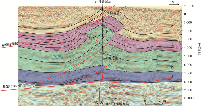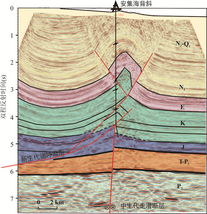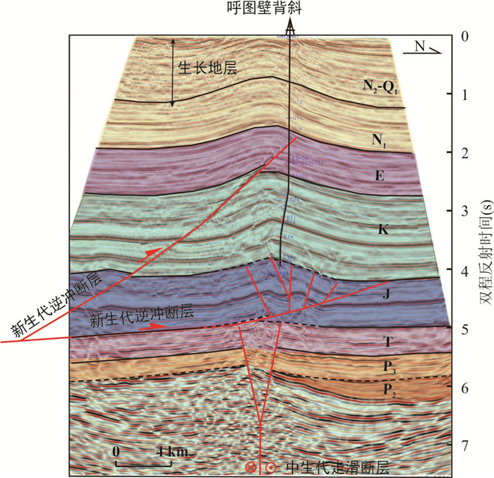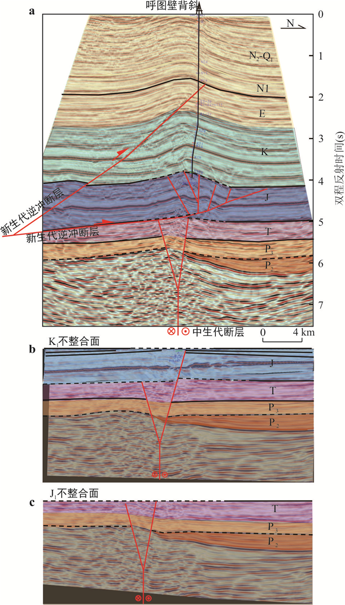 天山北麓褶皱冲断带经历了多期构造运动,于晚新生代收缩作用下定型,多期叠合作用下,基底构造对后续挤压构造的影响并不明确.基于高精度三维地震和钻井资料,结合野外地质观测,研究天山北麓中生代构造特征和变形机理,以揭示中生代构造对新生代变形和油气运聚的影响和控制因素.研究认为天山北麓中生代发育走滑断层,被白垩系-新生界覆盖.中生代走滑断裂在晚新生代挤压环境下重新激活,其上覆叠加了新生代逆冲断裂和褶皱,中生代构造的重新激活对塑造天山及其天山北麓现今构造发挥了重要作用.依据构造变形期次,将准噶尔盆地南缘的沉积层划分为浅、中、深3个构造层,对应上、中、下3套油气成藏组合;其中,中、深构造层具有较大勘探潜力.揭示天山北麓深部断层与后期挤压构造的关系,明确多期构造叠合演化对油气勘探的影响,为中国西部盆地类似构造研究提供借鉴.