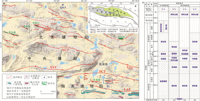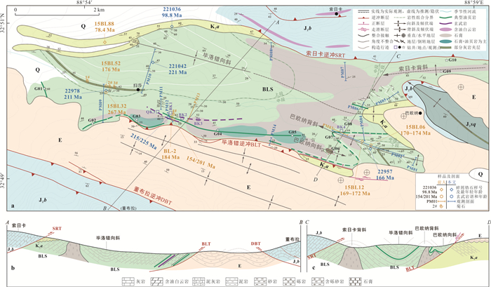 受多期逆冲、伸展构造运动及泥页岩、膏岩等塑性变形影响,羌塘盆地毕洛错含油页岩地层(简称毕洛错地层)变形极为复杂,加之古生物化石时代和同位素年代学结果存在争议,严重制约了对地层岩性组合与时代归属的认识.针对毕洛错地层复杂的构造变形,开展了详细的构造观测与剖面测量,并根据逆冲-褶皱变形特征开展地层追索与对比,将毕洛错地层自下而上分出3段7类岩性组合.对下段砂岩与中段玄武岩分别开展锆石U-Pb同位素测试、锆石结构与成因分析,获得下段与中段最大沉积年龄分别为166 Ma和154 Ma.综合区域背景,认为毕洛错地层时代至少为中侏罗世巴通期至晚侏罗世提塘期,顶部可能为早白垩世贝里阿斯期.毕洛错含油页岩地层时代的确定,为羌塘盆地油气勘探、区域沉积构造演化和大洋缺氧等问题的研究提供了新依据.