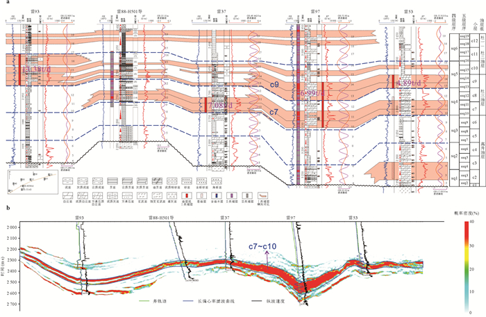 辽河坳陷西部凹陷雷家地区沙四段发育多套湖相碳酸盐岩,地质条件优越,具有良好资源前景,是目前该区的致密油勘探主要层系.为厘清优质储层特征和明确勘探目标,基于旋回地层学、钻测录井、地震反演以及分析测试数据识别了该区的天文旋回和分析了优质储层特征,并对优质储层“甜点”进行了预测.研究发现:(1)沙四段存在~6个长偏心率周期,~19个短偏心率周期,并弄清长偏心率旋回与该区油层组之间的关系;(2)雷家地区沙四段优质储层岩性以白云岩为主,白云石晶粒细小,多在1~3 μm分布,晶间孔隙及构造缝发育,微孔隙集中分布在0.3~0.4 μm,有效喉道长度分布在1~20 μm,孔隙体积主要分布在0.5~4.0 μm3,原油轻质组分主要赋存于裂缝和白云石晶间孔隙中,此类岩石致密且性脆,主要分布在杜三油层;(3)使用多参数融合的方法对单井进行了评价,建立储层评价标准,结合叠前地震反演资料,明确了优质储层“甜点”在层序格架内的分布规律,并进行了平面预测.研究成果进一步系统梳理了西部凹陷雷家地区沙四段地层、碳酸盐岩沉积储层特征并联合叠前地震反演有效识别该区甜点分布范围,为该区致密油勘探提供可靠的地质依据.