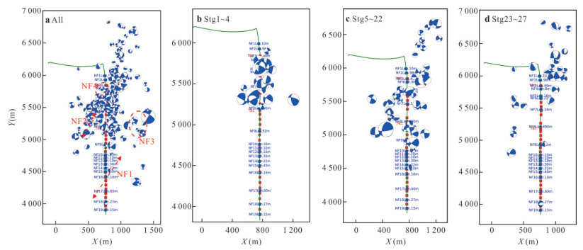 由于长期多期复杂地质构造作用,川南页岩天然裂缝及断层极其发育,其不仅降低压裂效率,更引起套变,加大经济损失.因此,针对天然裂缝极其发育的高风险井段进行多段合并而实施超长段压裂模式,以期规避施工风险,提高压裂效果.以四川盆地威远页岩裂缝发育井为研究对象,该井全井段不同尺度的天然裂缝极其发育,预示着水力压裂承受着极大套变风险.水力压裂过程中发生套变,及时调整施工方案,将18段合并为1 168 m的超长段,针对该超长段分别进行18次压裂和暂堵.基于微地震地面大排列观测刻画裂缝活动的时空延展特征和破裂机制,结合微地震、三维地震、地质、测井开展超长段水力压裂地质工程一体化效果评估.研究表明超长段水力压裂在一定程度上可以降低高风险区域水力压裂套变风险,但高裂缝发育区亦会成为超长段压裂流体的泄流通道,造成改造不充分,因此,结合微地震响应开展超长段压裂实时分段和施工方案调整,既有利于降低套变风险,又提高压裂改造效果.
