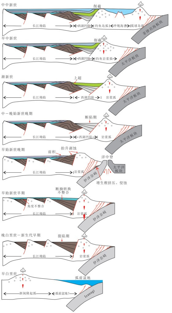 东海盆地作为东亚陆缘构造演化的关键区域,其基底属性、俯冲过程及多期构造-沉积耦合机制长期存在争议.在现有地质-地球物理资料全面分析研究基础上,结合前人的证据和认识,对东海盆地关键基础地质问题进行了系统总结和评述,并提出未来研究的思路和方向.基底归属争议聚焦于华南陆壳延伸与外来地体拼贴两种假说,地壳厚度突变与锆石同位素为后者提供新证据,但地壳演化及碰撞造山带的时空约束仍待完善;中生代俯冲过程呈现低角度俯冲-板片拆离-岩浆弧迁移等阶段性演化,早侏罗世岛弧岩浆岩的发现修正了传统平俯冲模型,但白垩纪及新生代岩浆弧位置仍缺乏海域弧岩浆岩的直接证据.这很大程度上影响了中生界盆地性质及演化的认识.新生代盆地格局北部受俯冲后撤控制,南部可能与南海扩张密切相关,但还需俯冲及南海拉张过程等关键证据的支持.中生代古地理格局模糊,新生代物源体系突变及构造-沉积响应分异显著.当前研究缺乏华南陆域-东海盆地-琉球群岛地质证据的系统对比,未来需整合深部地球物理探测、高精度年代学与数值模拟,构建“俯冲-岩浆-沉积”协同演化模型,为油气资源勘探与陆缘动力学研究提供理论支撑.