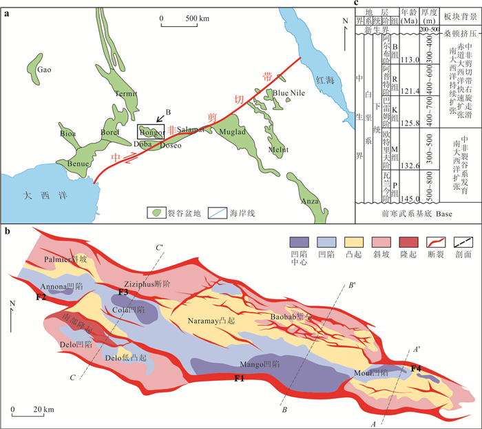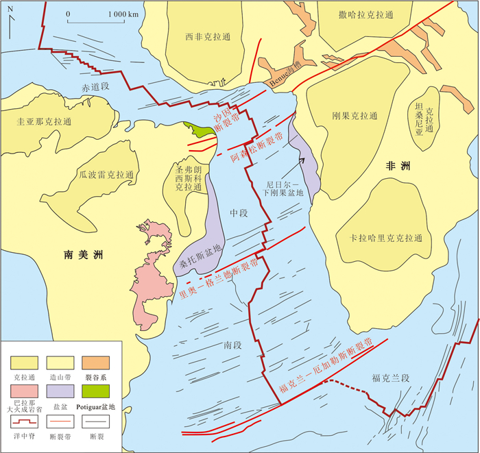 基于地震资料精细解析和构造物理模拟实验研究了中非剪切带Bongor盆地独特的结构构造特征及其形成演化的动力学机制.结果显示Bongor盆地整体表现为南断北超箕状断陷结构,局部发育构造转换带,沉积中心受控于边界主干断裂,现今保留明显的反转裂谷盆地特征,受早白垩世两期裂陷和晚白垩世末期-古近纪挤压反转共同控制.构造物理模拟实验证实了盆地受两期裂陷及其后反转作用的控制机制,并揭示两期裂陷伸展方向夹角为25°~45°.研究认为:早白垩世早期,南大西洋初始扩张引发的南非次板块与东北非次板块间近N-S向拉张,导致包括Bongor盆地在内的中非裂谷系盆地经历第一期近南北向伸展的裂陷作用;早白垩世晚期,大西洋赤道段的扩张以及特提斯洋向欧亚大陆俯冲,导致东北非地块与南非地块之间经历近NE-SW向的伸展作用,北西走向的Bongor经历第二期裂陷作用.研究提出了Bongor盆地形成演化的新认识,对指导下一步油气勘探具有重要意义.