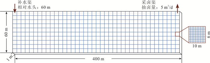 人工溶采技术将储卤层蒸发盐矿物转化为卤水,对盐湖资源开发具有重要意义.然而补水溶矿引发含水层渗透性演化机制尚未得到充分阐述.研究基于Python开发耦合MODFLOW6和PhreeqcRM的数值模拟工具MF6PQC,系统研究卤水反应运移对储卤层渗透系数及溶采过程的影响.结果表明,含水层初始非均质结构决定了渗透系数的时空演变规律.溶矿初期在高渗区优先发生地球化学反应,光卤石等高活性矿物溶解使孔隙度与渗透系数显著增大,并在对流-弥散的正反馈作用下形成优势渗流通道.均质或高渗连通结构有利于溶浸剂均匀波及,而强连通或含低渗隔挡的弱连通地层则使固体矿物无法被有效接触,从而降低整体溶采效果.研究深化对储卤层渗透性变化的认识,为优化卤水溶采提供理论依据.
