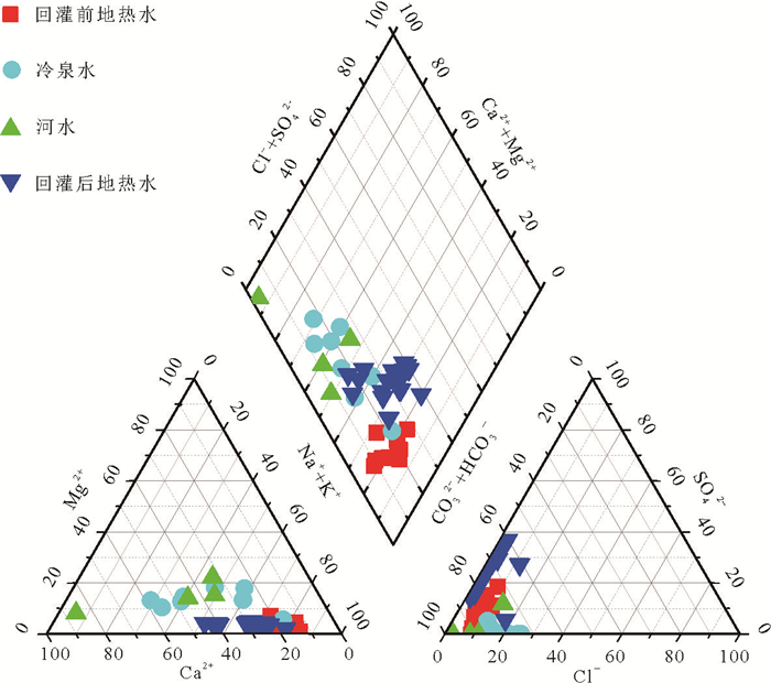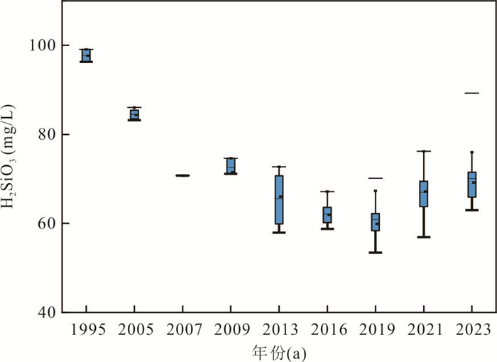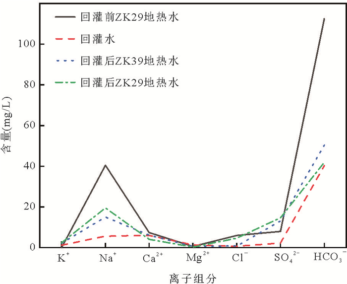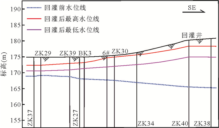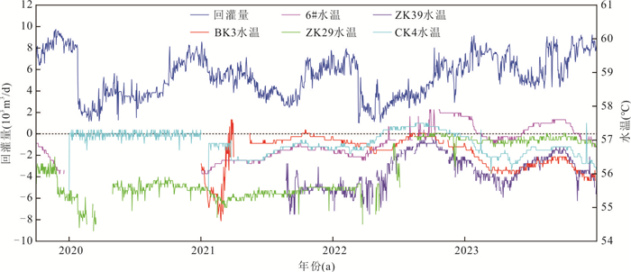 断裂型热储回灌在增大地热水供给能力、抬升地热水水位等方面成效显著,能有效改善地热开发利用过程中的资源与环境问题,已引起广泛关注.以宜春温汤地热田为研究对象,采用时间序列分析、水文地球化学等方法,分析地热田地表水回灌—开采过程中回灌量、开采量、水温、水位和水质等长序列监测数据,总结地热田地温场、流体场和化学场等动态变化规律,研究长期回灌对断裂型热储回灌的可持续性和安全性.结果表明,回灌量是影响地温场、流体场和化学场动态变化的主要因素.长期回灌抬升地热田水位3.952~4.986 m,增大水位动态变幅13.4倍,倒转水位平面分布方向;回灌量未超出阈值时,开采井水温随回灌量呈3~12个月延迟的反向变化,超出后则呈“断崖式”下降;长期回灌引起井温整体下降,最大幅度6.8~10.0 ℃,但控制回灌量后趋于稳定;回灌水直接“淡化”地热水,Piper图中水化学类型向地表水方向迁移,由HCO3-Na型转变为HCO3·SO4-Na·Ca型;长期监测证实地热田回灌量控制在9 734 m3/d以下时安全可控,资源量增大414%.断裂型热储地表水回灌在控制回灌量不超出阈值时具有良好的可行性和安全性.