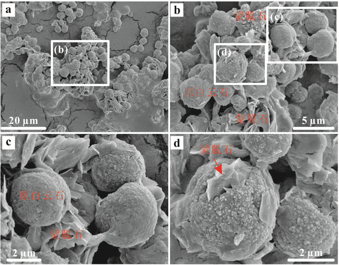 白云石[CaMg(CO3)2]的成因机制是地球科学领域长期关注的重要问题.尽管已有研究表明特定微生物功能群和黏土矿物能够分别催化原白云石(有序白云石的关键前驱体)的形成,然而对于蓝细菌这一古老且广泛分布的光合微生物的催化作用,特别是其与黏土矿物的协同效应机制,目前仍缺乏深入认识.研究以耐盐蓝细菌Synechococcus elongatus FACHB⁃410为研究对象,通过对比有无蒙脱石的矿化实验体系,探究了黏土矿物与蓝细菌对碳酸盐矿物沉淀的协同调控作用.实验结果表明,在蓝细菌—蒙脱石共存体系中,X⁃射线衍射(X⁃ray diffraction,XRD)和拉曼光谱证实主要形成原白云石,而不含蒙脱石的体系则生成单水方解石和低镁方解石.通过扫描电镜(scanning electron microscopy,SEM)、聚焦离子束显微镜(focused ion beam microscopy,FIB⁃SEM)和透射电镜(transmission electron microscopy,TEM)等表征技术,发现原白云石以纳米晶粒形式组装并分布于蒙脱石表面.基于密度泛函理论(density functional theory,DFT)的计算模拟进一步表明,蒙脱石促进蓝细菌介导原白云石形成的关键机制在于其表面负电性,即通过强静电作用吸附水合镁离子,有利于其去水合化反应的发生,从而显著降低原白云石的成核能垒.