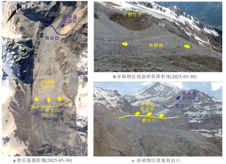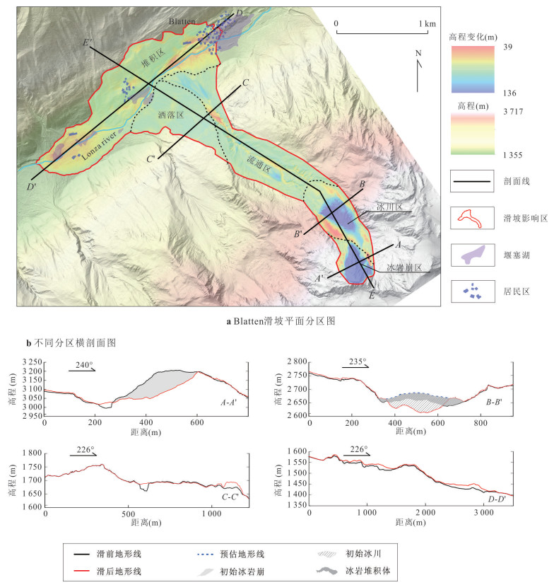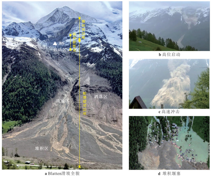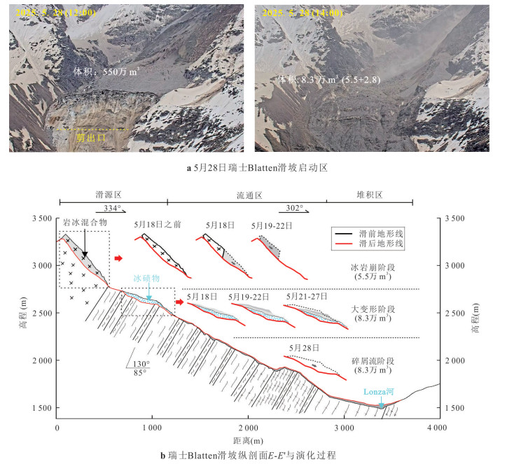 2025年5月28日瑞士瓦莱州布拉滕村(Blatten)上游发生高位远程冰岩崩事件,滑体体积为830万m3,运动距离为3 300 m,堆积面积为2.66 km2,滑坡堆积导致1人遇难,300名居民撤离,隆扎河堰塞断流.综合遥感调查、滑震信号解译和动力学数值模拟等方法,揭示了瑞士Blatten高位远程冰岩碎屑流动力成灾过程与级联放大效应.结果表明:(1)瑞士Blatten滑坡发生过程主要呈现为高位冰岩崩加载-冰川融化变形-高位远程碎屑流成灾3个地质演化阶段;(2)该滑坡具有强烈的级联放大效应,上部危岩体逐渐垮塌堆积于Birch冰川之上,随着冰川上覆堆积逐渐积累和冰川强度的逐渐弱化,最终发生整体失稳,造成了此次巨大规模成灾;(3)冰屑和融水显著降低了滑体运动阻力,促进碎屑流低摩阻远程致灾.综上研究,认为在高位远程滑坡调查、风险评估与早期预警中,应充分考虑多次小滑坡累积成大灾的级联放大效应,该级联放大效应将大幅提高灾害的破坏力和危害性.瑞士Blatten滑坡为我国西部山区城镇风险区划和重大工程建设中面临的高位远程地质灾害风险提供了重要警示作用.