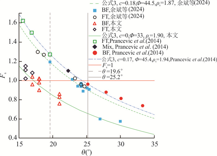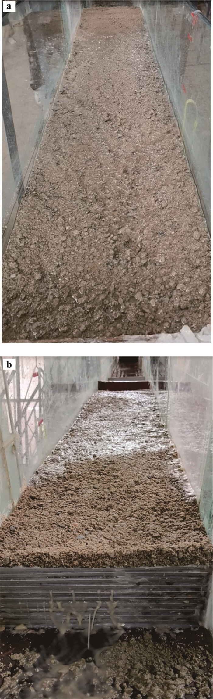 底床失稳模式是形成沟谷泥石流的重要起动模式,目前还没有详细的底床失稳形成泥石流的临界条件.对不同粒径、饱水密度、内摩擦角、渗透系数等泥沙堆积物被起动形成泥石流的起动模式及临界条件开展了一系列的水槽实验.发现无黏聚力的固体物源在底床失稳模式中,形成泥石流的坡度阈值随着泥沙的饱水密度、内摩擦角的增大而增大,最小阈值坡度约17o;当底床坡度大于阈值坡度时,底床失稳的饱水层厚度随坡度的增加而减小,最小饱水厚度可以为0.河流输运模式形成泥石流的径流临界流量远大于底床失稳模式形成泥石流的径流临界流量,底床失稳模式起动形成泥石流的临界流量为水槽宽度、泥沙堆积物的渗透系数和饱水深度之积.