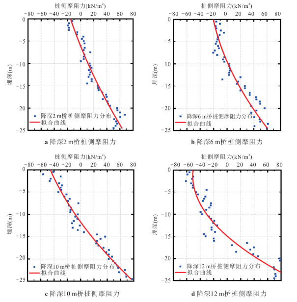 针对地铁深基坑降水对邻近高铁桥梁桩基变形与安全运营的影响,开展渗流-应力耦合作用下的桩-土相互作用机理研究,并提出有效的协同控制措施.通过现场预降水试验,监测不同降深条件下桥桩周边地下水位、地表沉降变化;运用Abaqus进行数值模拟,建立渗流-应力耦合模型,分析不同降水深度对桩基侧摩阻力、中性点位置的影响,并与现场实验数据对比总结变化规律.随着降水深度增加,渗流场扰动区逐渐扩展至桩基,并在桩基附近形成绕桩渗流的模式;桩基变形呈非线性增长,降深超过10 m后沉降变形与横向变形显著加大;桩身上部负摩阻力增大,中性点下移,桩底正摩阻力增强.地铁深基坑近接高铁降水时桥桩变形受降水深度影响较大,可采用多级降水、止水帷幕、实时水位监测与回灌等协同控制措施,控制桥桩变形,保障高铁运营安全.