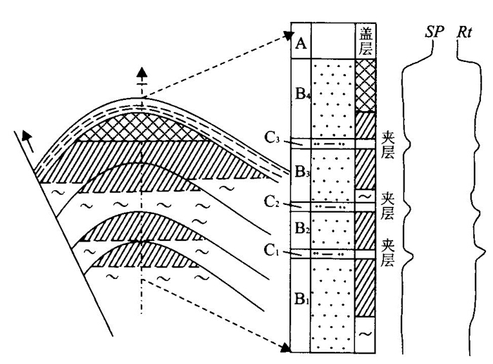 Based on capillary pressure theory, the accumulation and distribution of hydrocarbon in inhomogeneous sandstone reservoir with complicated pore structures were analyzed. It was concluded that the accumulation and distribution of hydrocarbon in inhomogeneous reservoir were predominated by the poor permeable layers (barrier beds). The analysis demonstrated that the transition intervals would be long in inhomogeneous reservoir with moderate to low porosity and permeability. The entrapment in this kind of reservoir requested larger closure height. In the situation of limited closure, the poor permeable layers resulted in sealing process and formed non-saturated, both hydrocarbon and free water-bearing stratum with broader distribution vertically. The production ability was much limited because of the low effective permeability in the porous media with two-phase liquid system. All those features bring about a contradiction between the gas logs, well logs and the well testing. The well log responses and characteristics of this reservoir were also discussed in this paper both theoretically and by the case study. Generally, the correlation in well logs between the hydrocarbon saturation and the porosity in this formation became obscure and difficult to distinguish due to the great changes in porosity and saturation of the reservoir vertically. A case study was also presented and proved a good evidence of the above theoretical deductions.