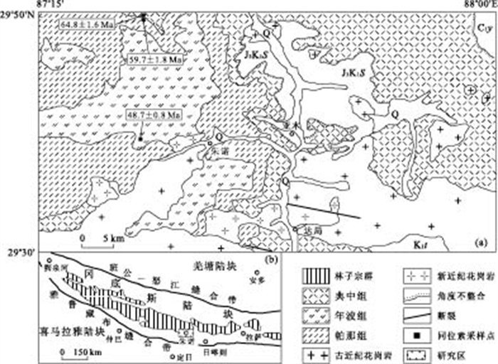 The Paleogene volcanic rock in Linzizong Group is developed in the Gangdise belt, southern Tibet plateau and it is deemed to represent the result of Neo-Tethys from its subduction to the India-Asia collision. Its precise age is significant to constrain the time of the India-Asia collision. Herein a systematic study, including zircon U-Pb ages, major and trace elements and Sr-Nd isotopic geochemistry, has been done to volcanic rock from Linzizong Group in Zhunuo area in middle Gangdise belt. We obtain Linzizong Group volcanic rock LA-ICP-MS zircon U-Pb data showing the following ages: the Dianzhong Formation, 64.8±1.6 Ma, the Nianbo Formation, 59.7±1.8 Ma, the Pana Formation, 48.9±0.8 Ma. The data of elementary and isotopic geochemistry suggest that the characteristics of these formations in Zhunuo area are similar to regional characteristics. Among them, Dianzhong and Nianbo formations are calc-alkalic and high-K calc-alkalic rocks with characteristics of arc-island volcanic rocks. Pana Formation contains shoshonite and is syn-collision volcanic rock. It is proved that suture of the Yarlung Zangbo oceanic basin and the beginning of collision between India and Asia were about 50 Ma.