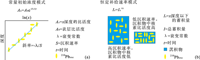 Although modern sediment dating method has been widely used in coastal areas, applications in the open tidal flat are still challenged. Especially, 210Pbexc dating results given by CIC (constant initial concentration) model and CRS (constant rate of supply) model in the same core are sometimes very different, which is difficult to interpret even compared with the 137Cs data. In this paper, one typical short core collected from open tidal flat was chosen for a comparison study to facilitate future applications of 210Pbexc methods in open coastal areas. The 210Pbexc CIC and CRS models were employed for the calculation, and the two 210Pbexc dating models were analyzed and compared with 137Cs method on the basis of sedimentary history data. It is found that the results given by CIC model are more reliable than those by CRS model, which is attributed to the fact that it is easier for the sediments transported by currents to meet the prerequisites for CIC model, in other words, the initial concentration of 210Pbexc is constant in most instances in coastal areas. As data users generally are expecting to obtain the age of each layer by 210Pbexc dating method (e.g. CRS model), its applications in open coastal area require prudence.
