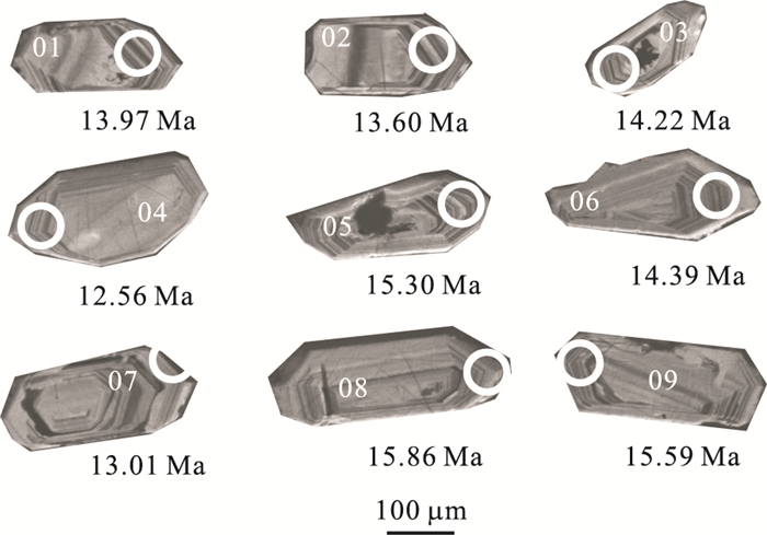 The Lakang'e Cu-Mo deposit is a typical porphyry deposit in the eastern Gangdese metallogenic belt, on which previous geochemical studies are not adequate and systematic.In this paper, we present the results of the systematic logging of drillholes and provide new petrological zircon U-Pb age, and Hf isotope data for the deposit that allow the identification of the timing of formation and mineralization of the Lakang'e porphyry Cu-Mo deposit and the relationship between this deposit and other porphyry-type deposits in the Gangdese belt.Chemical analyses show that the ore-bearing granodiorite-porphyry has high SiO2, low Mg and Ca (SiO2=62.51% to 72.41%, MgO=0.59% to 1.30%, CaO=0.95% to 3.44%), highalkaline (Na2O=3.51% to 4.75%, K2O=3.30% to 4.97%), metaluminous (A/CNK=0.90 to 1.01), enriched in LILES such as Rb, Ba, Th, U, Sr, and depleted in HFSES such as Nb, Ta, Ti, P and Zr. The rocks also display low total REEcontents (∑REE=82.80×10-6 to 132.09×10-6), enriched LREE and differentiate obviously, with weakly negative Eu and Ce anomalies. LA-ICP-MS zircon U-Pb dating indicates that the Lakang'e ore-bearing granodiorite-porphyry emplaced at 13.58±0.42 Ma. εHf(t) values and two-stage model ages of zircons are -3.99 to 4.49 and 808 to 1349 Ma respectively. The results indicate that the ore-bearing granodiorite-porphyry in the Lakang'e deposit has adakitegeochemical characteristics, and the parental magmas were mainly derived from a juvenile crust and partly mixed with old continental crust rock during the evolution. The porphyry in Lakang'edeposit was formed in post-collisional extension setting of India-Asia continental collision orogenic belt.