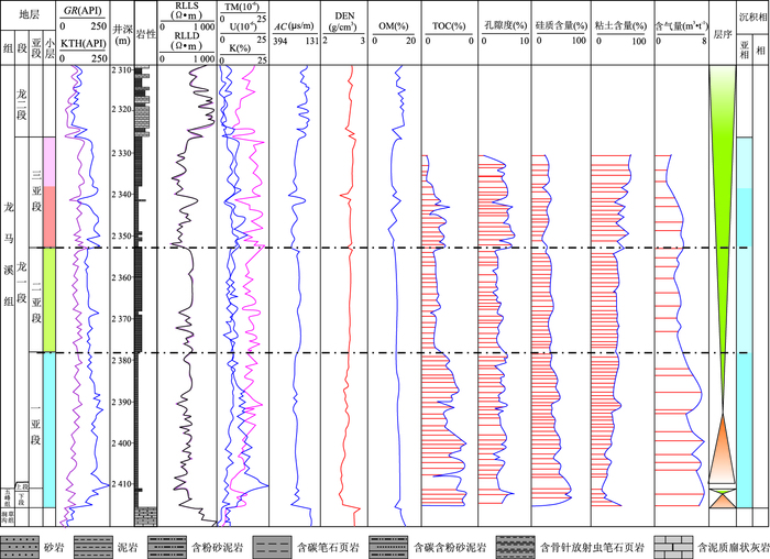 Shale sequence division and composition remain highly controversial, and the existing research on the characteristics and genesis of sequence framework is inadequate. The Wufeng-Longmaxi Formation Shale is one of the most important horizons of shale gas exploration in the Yangtze region. On the basis of research on well-core, outcrop, conventional log, a spectral gamma-ray log, geochemical parameters and other information are used for quantitative sequence stratigraphy analysis of black shale in the upper Ordovician Wufeng Formation to the lower Silurian Longmaxi Formation. Three third-order sequences are divided based on the recognition of four third-order boundaries. The Wufeng Formation is equivalent to a third-order sequence and is subdivided into a transgressive system tract (TST) (black shale of lower Wufeng Formation) and a highstand system tract (HST) (Guanyinqiao member of upper Wufeng Formation). the first member of Longmaxi Formation is equivalent to a third-order sequence and is subdivided into a TST, an early highstand system tract (EHST) and a late highstand system tract (LHST); the second member and third member of Longmaxi Formation are combined to be one third-order sequence and is subdivided into a lowstand system tract (LST), a TST and a HST. Sequence development and sedimentary environment characteristics are analyzed within each system tract unit.TOC is correlated to V/Cr and EF-Ni differently within different system tract units, suggesting paleoproductivity and water redox condition in different system tract units have different effect on the enrichment of organic matter in the studied shale. Based on the changes of depositional processes and water column conditions, we develop a depositional model to interpret the evolution of depositional environments of the Wufeng-Longmaxi Formation.